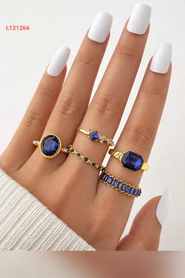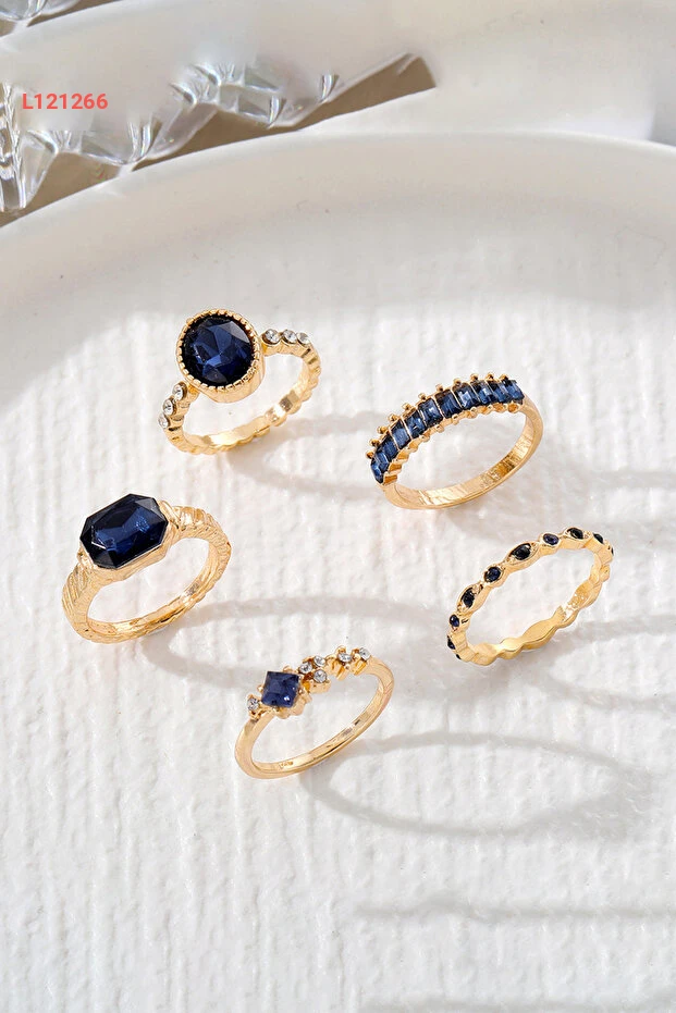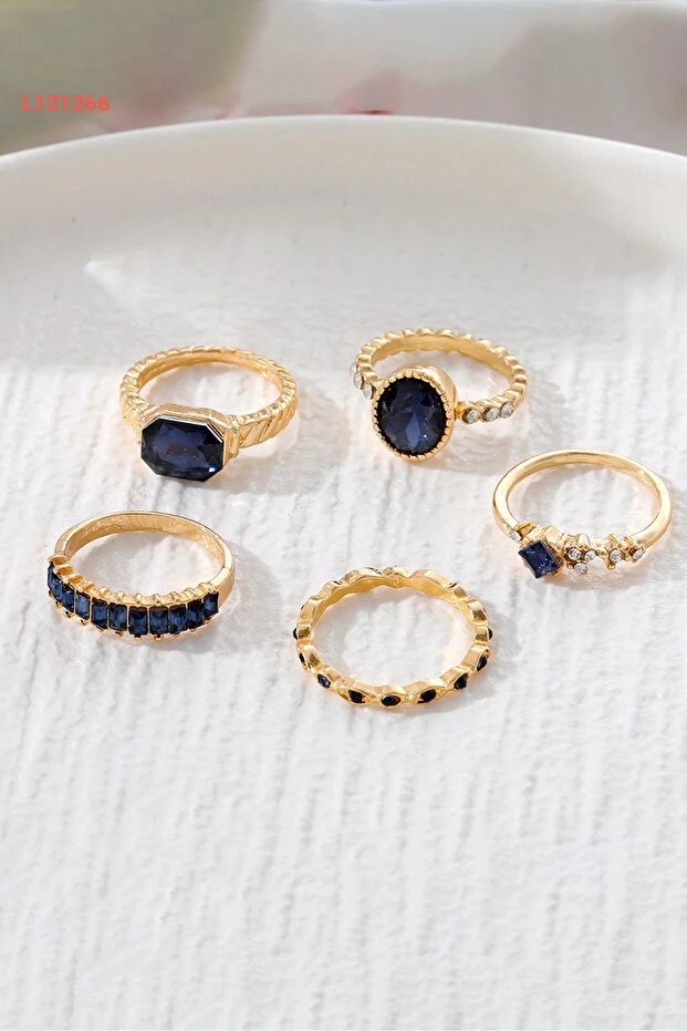 مجموعة خواتم ذهبية مزينة بخمسة قطع مع أحجار كريستال زرقاء