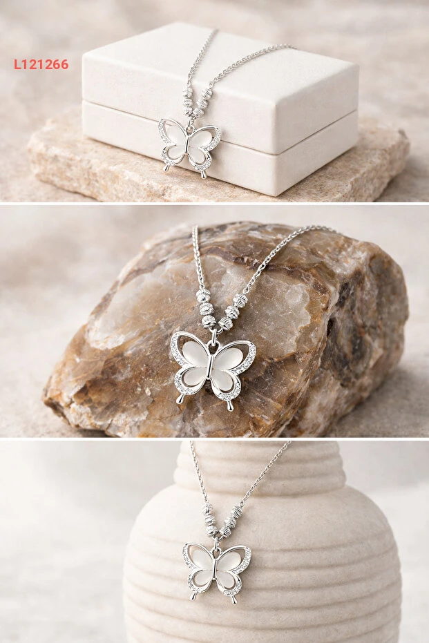 قلادة بتصميم فراشة دقيقة مزينة بالأحجار من مجموعة "تاşlı"