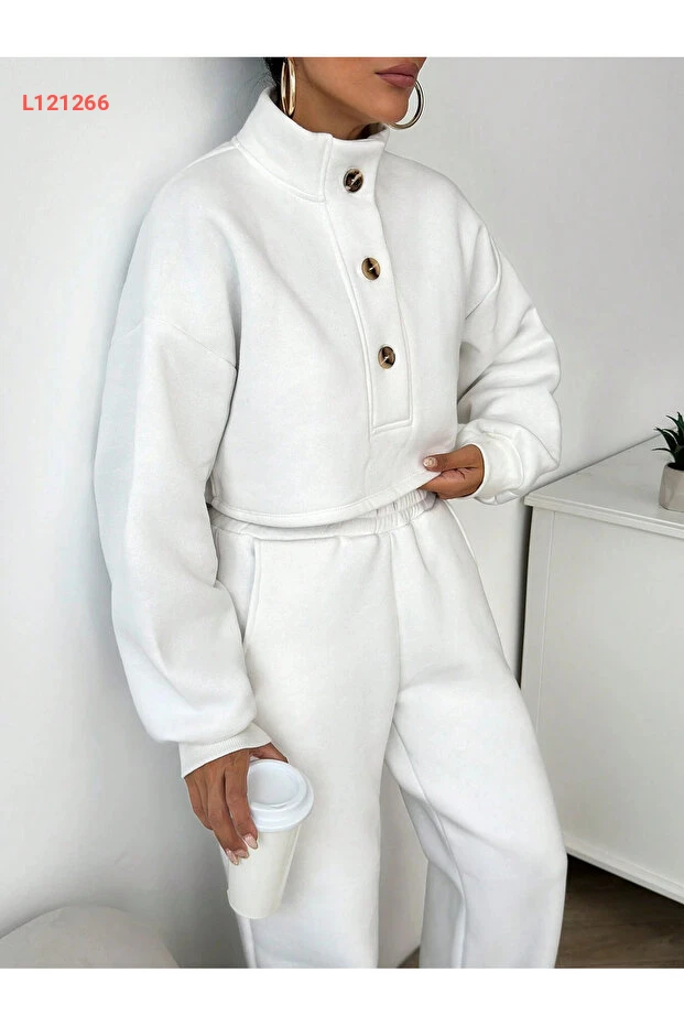 اكتشفي أناقتك الجديدة مع طقم الرياضي من DIFFerent، الذي يتميز بتفاصيل الأزرار الجذابة وقصة الكروب العصرية. مصنوع من أقمشة عالية الجودة، يضمن لك الراحة والحرية في الحركة طوال اليوم. كوني دائماً في قمة أناقتك سواء في صالة الألعاب الرياضية أو في النزهات اليومية!