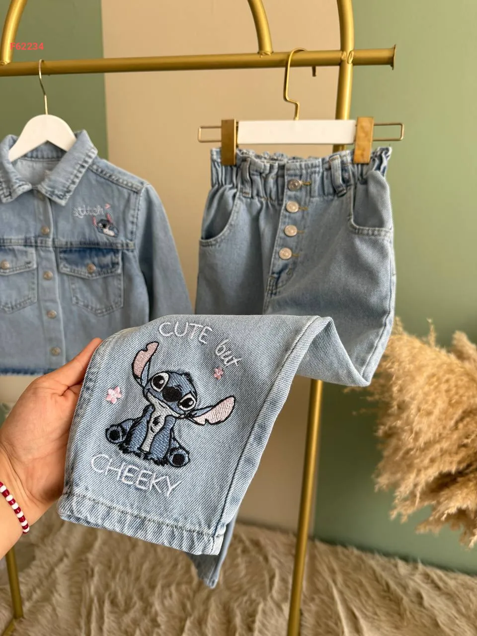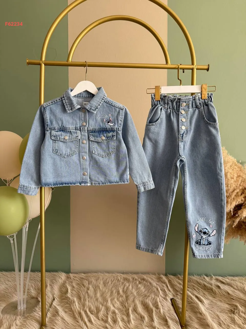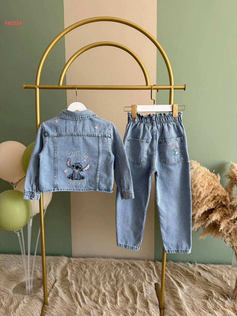 طقم بنطال جينز بناتي ستيتش وجاكيت