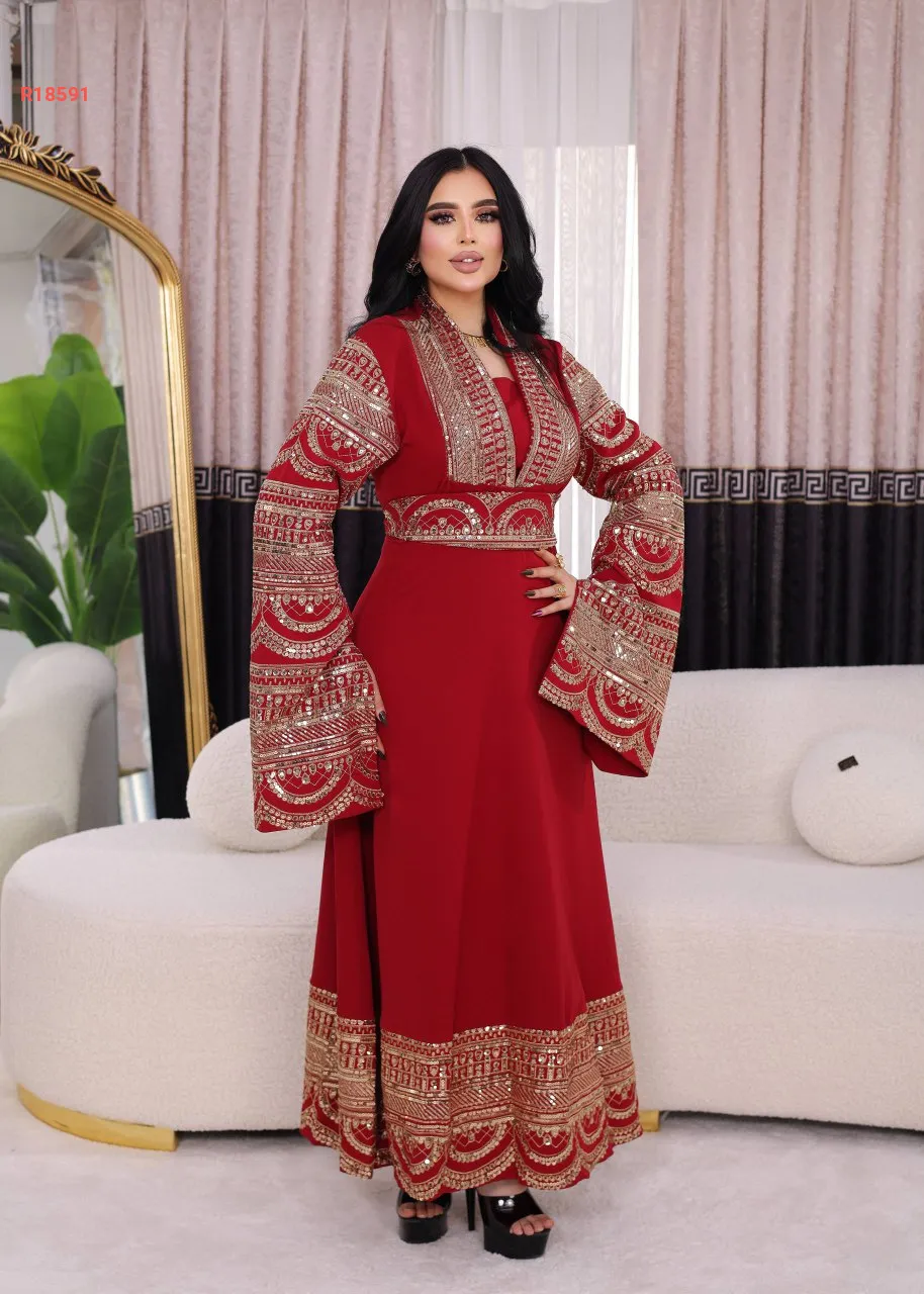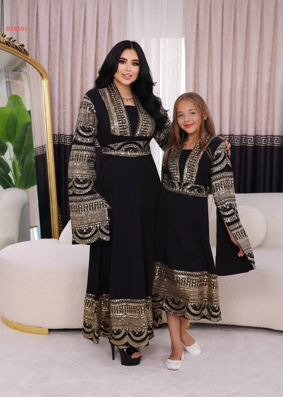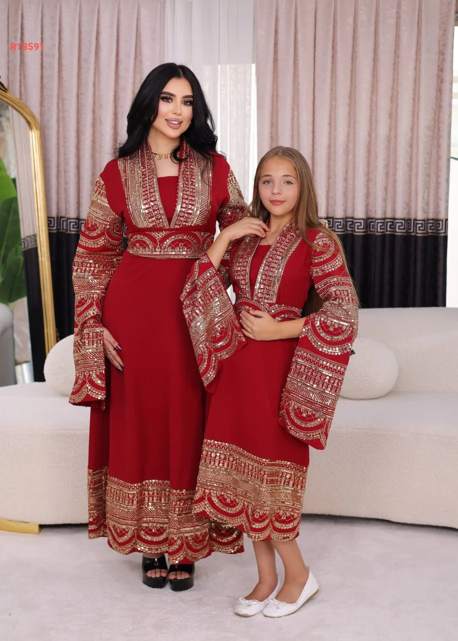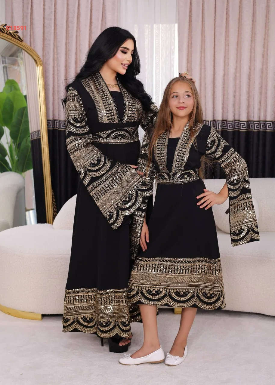 قفطان الام والبنت، بأكمام نصف فتحة ، مطرز مع شك البرق