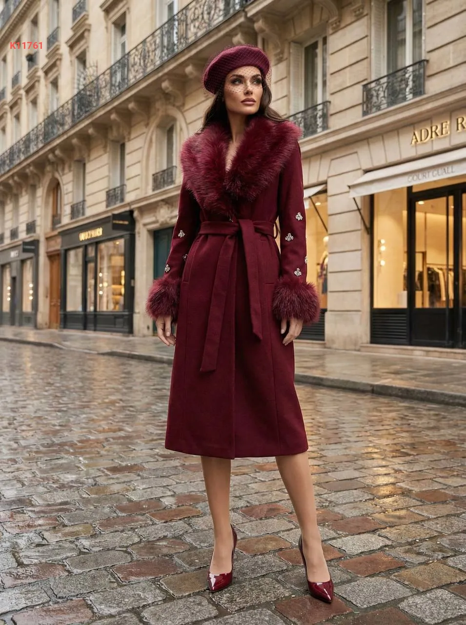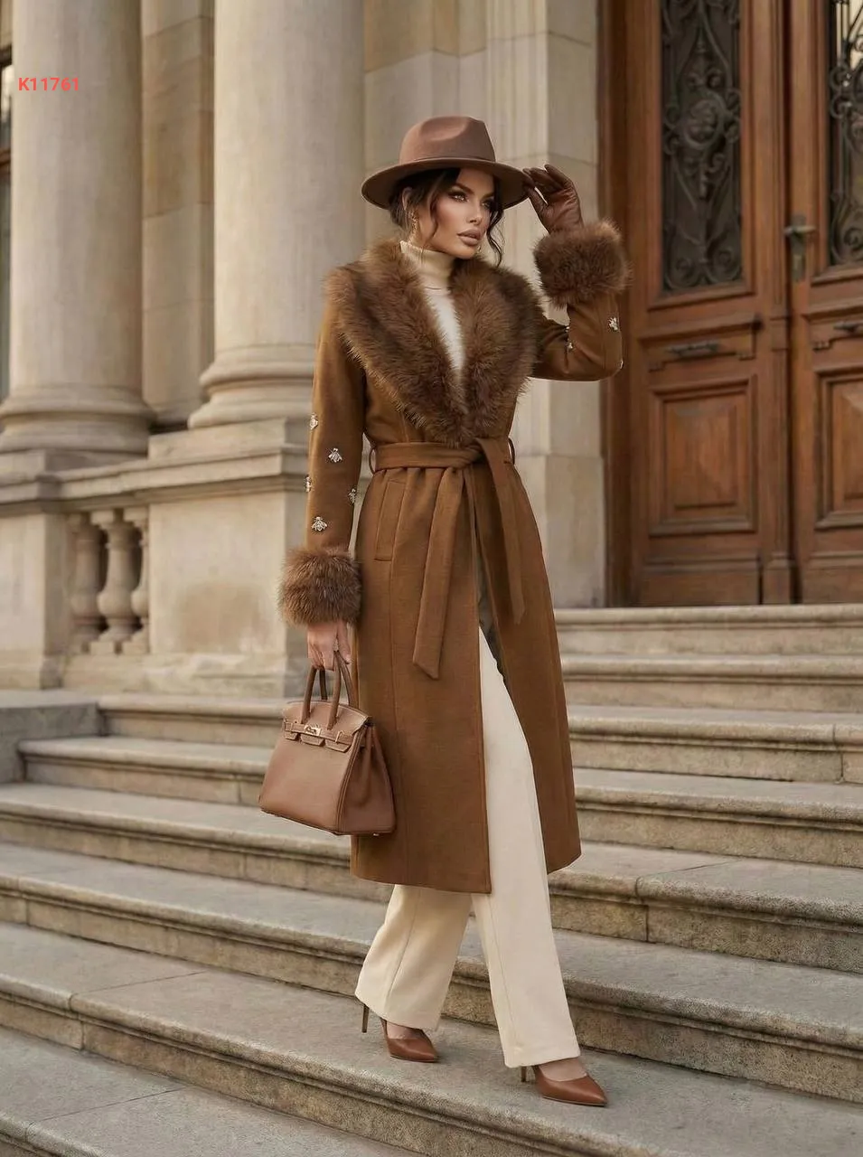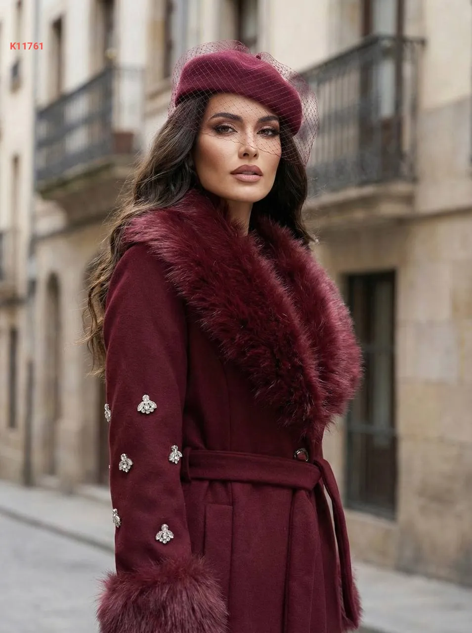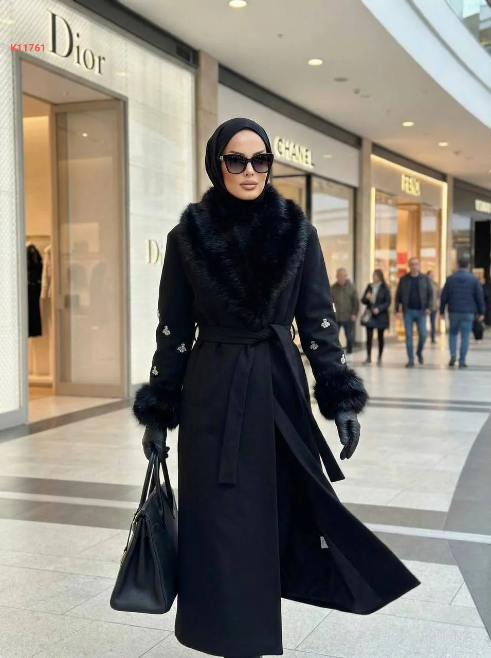 معطف جوخ وفرو بأحجار عالكم