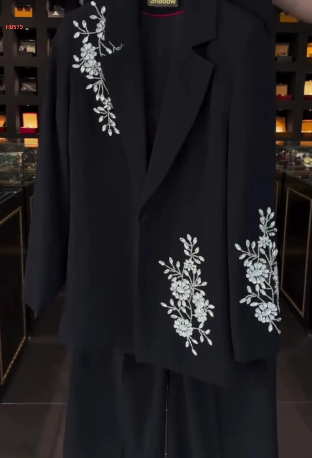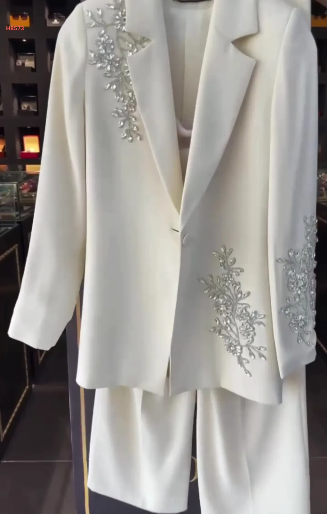 طقم قطعتين سهرة جاكيت بأزرار مع عرق مرصع بالكريستال