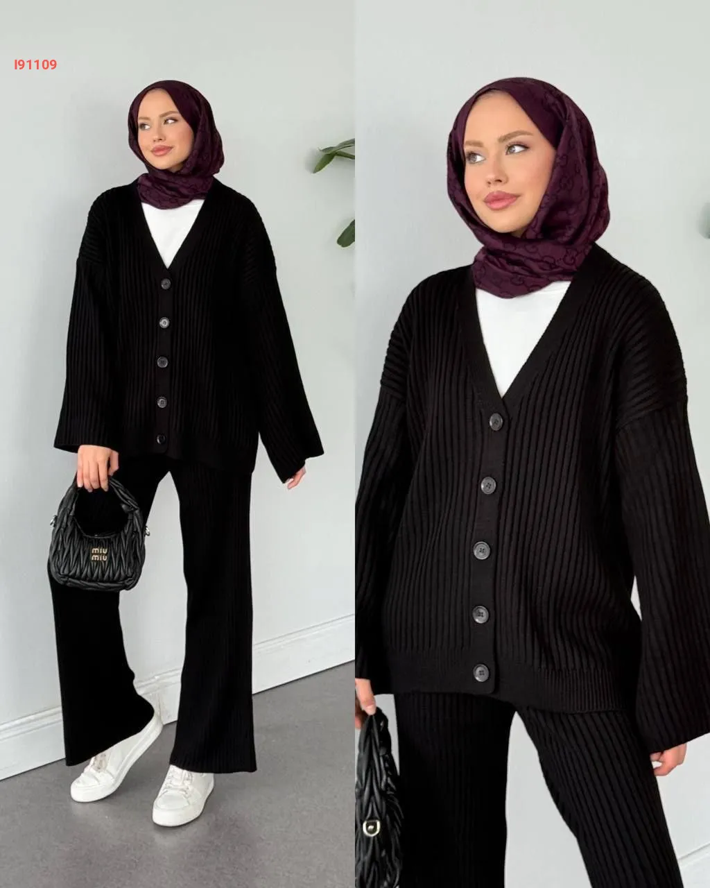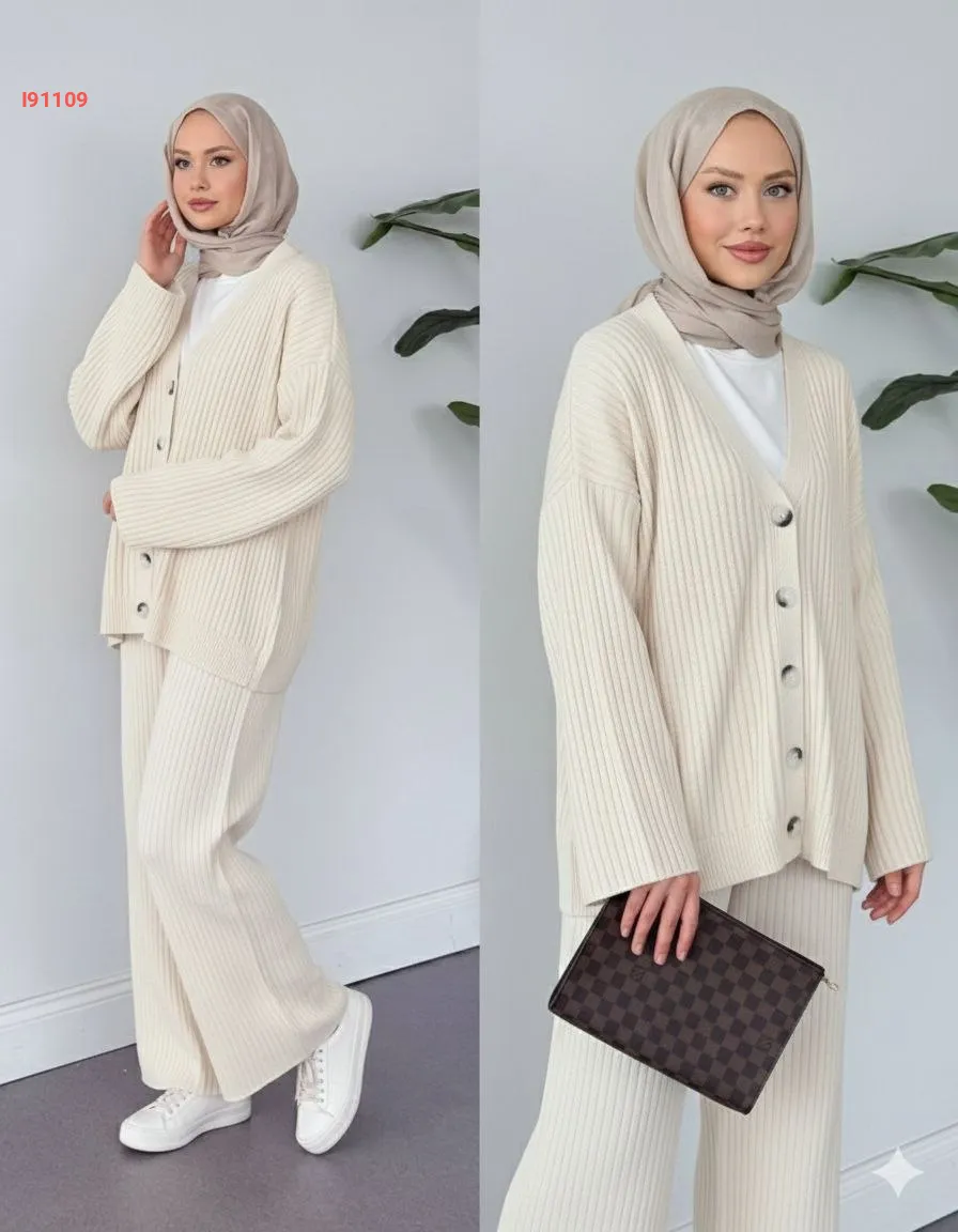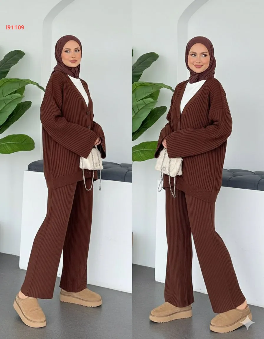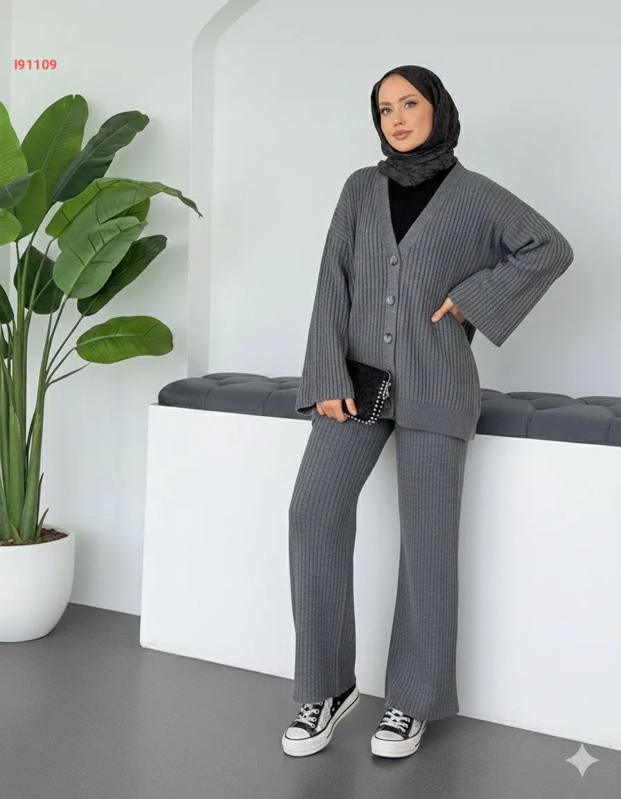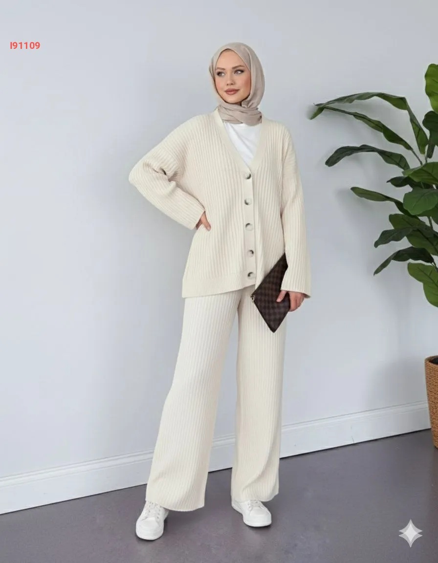 طقم بنطال تريكو وجاكيت قبة v