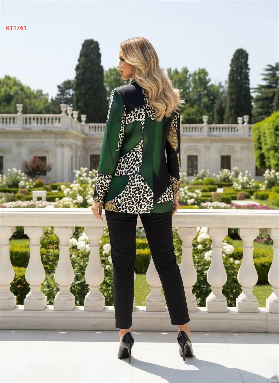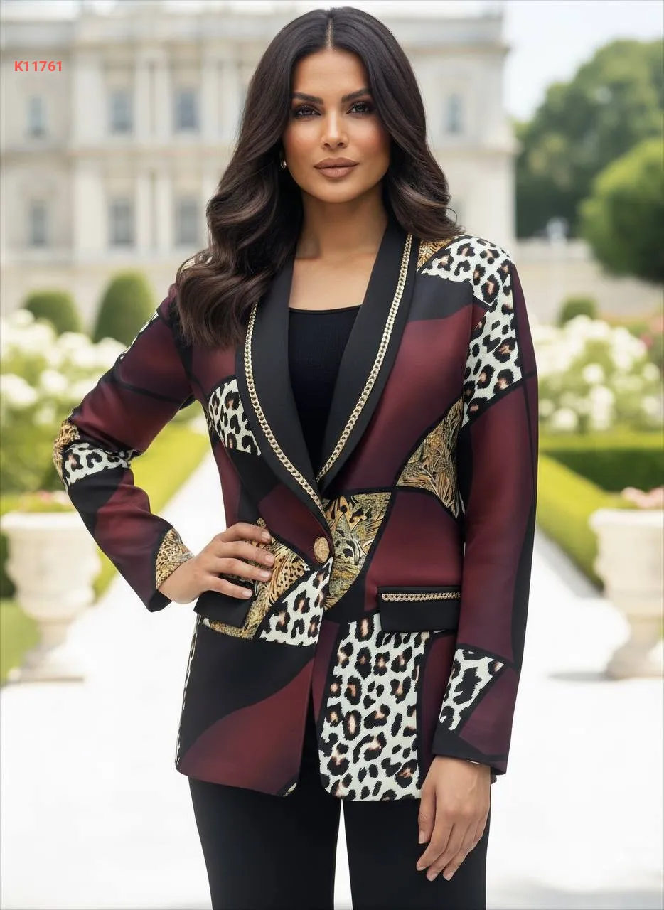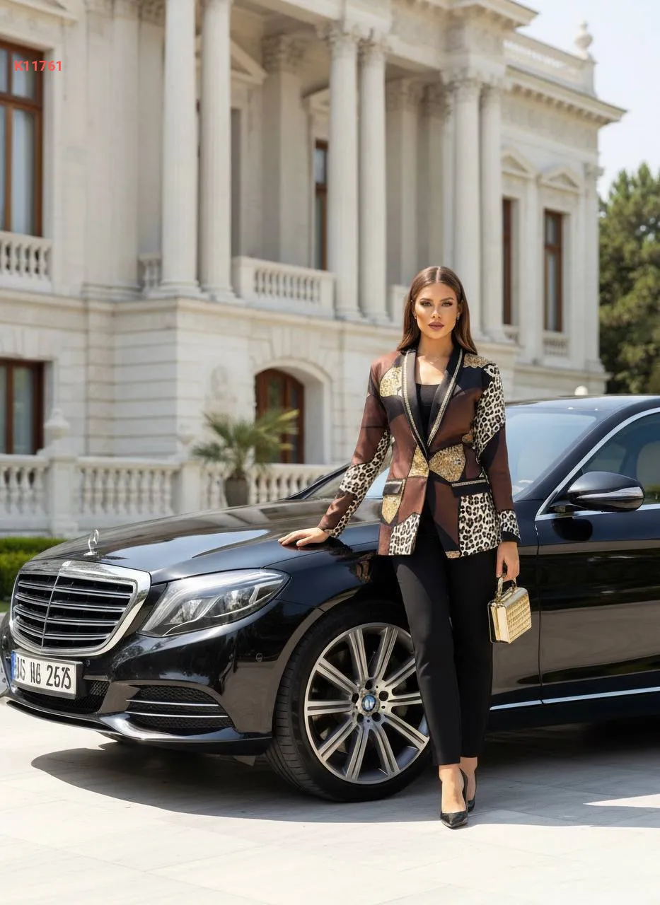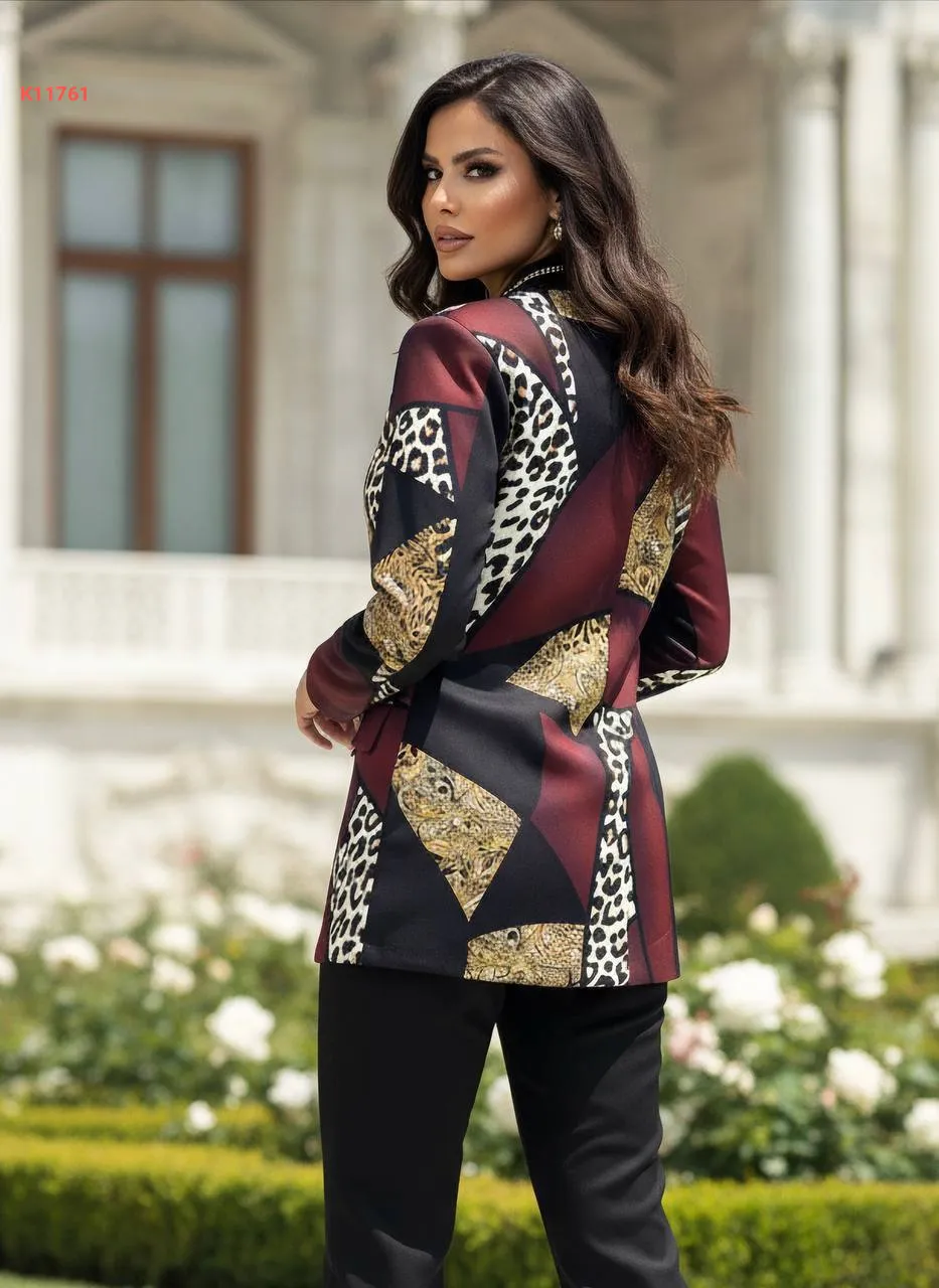 طقم بنطال وبليزر بتفاصيل منقوشة