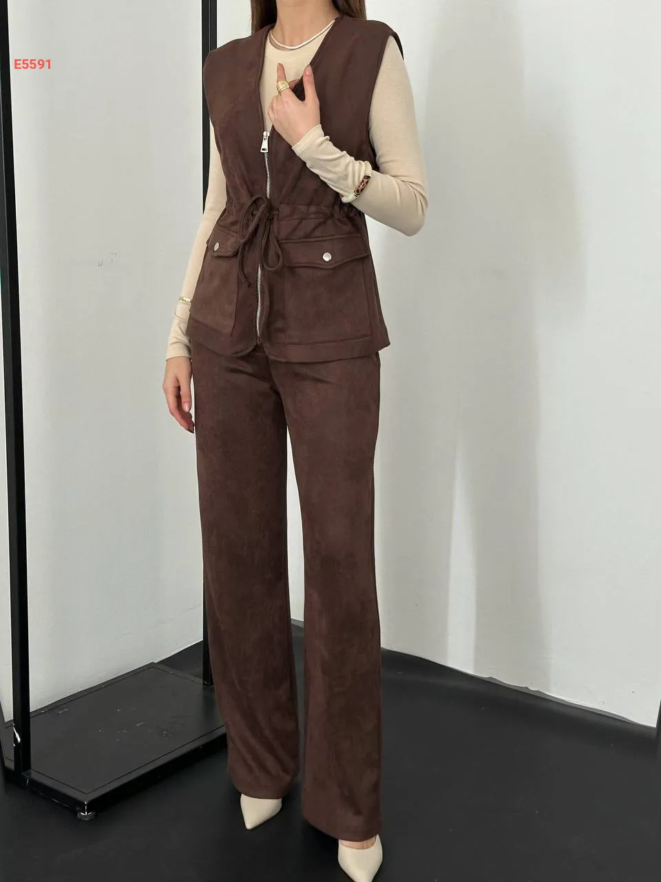 طقم بنطال شامواه ويلك بسحاب
