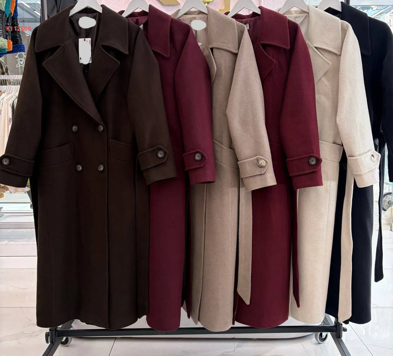 معطف جوخ مع حزام، بأزرار مزدوجة وجيب عريضة