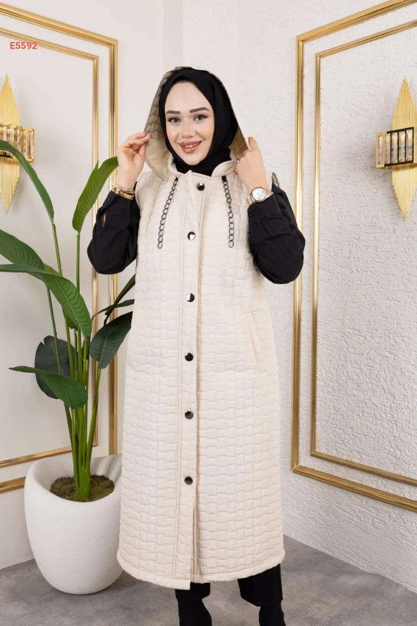 💫 YENİ SEZONموسم جديد 🥰💫 KOD 2010💫 KAPİTONE KUMAŞ 💫 120CM İÇİ VELBUALI {KÜRKLÜ} YELEK💫 1/2/3/4/5 BEDEN💫 44/60 UYUMLU