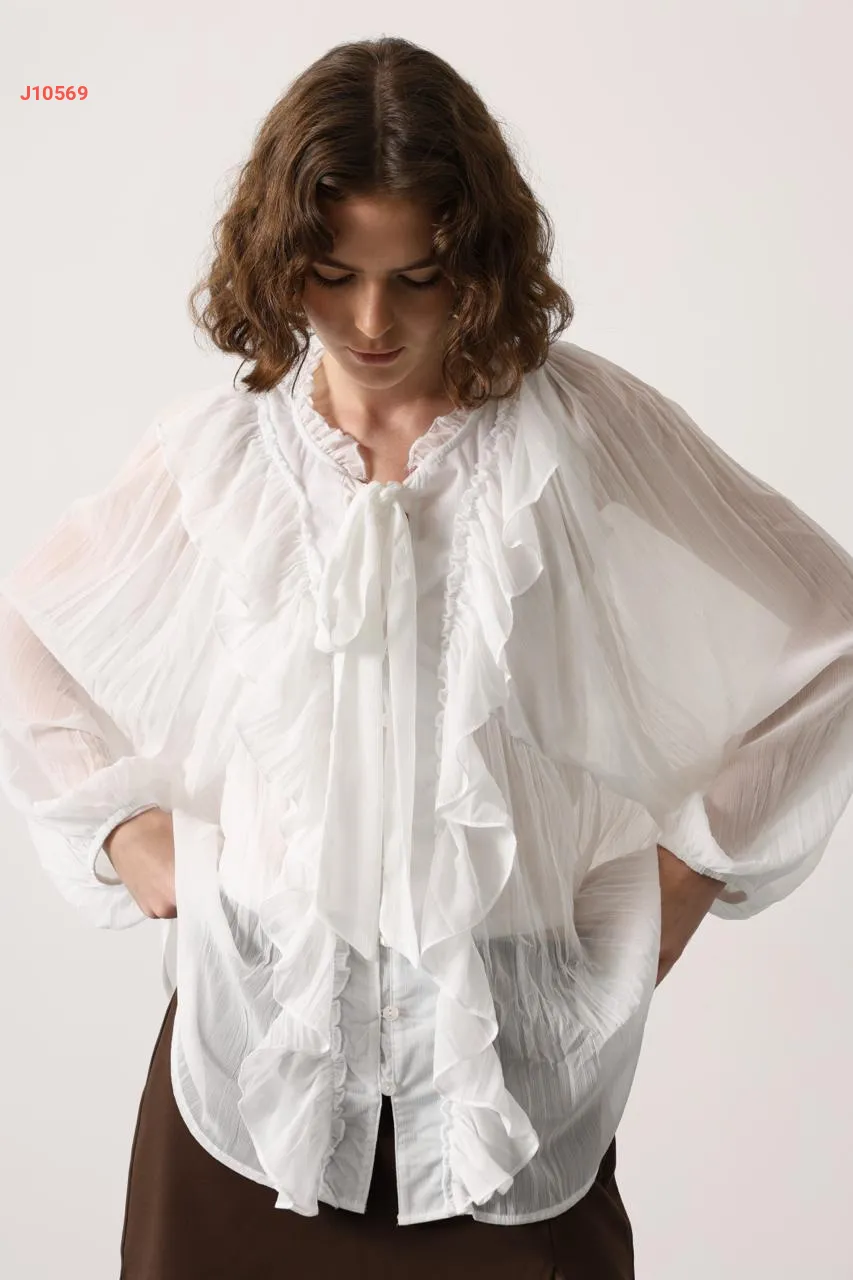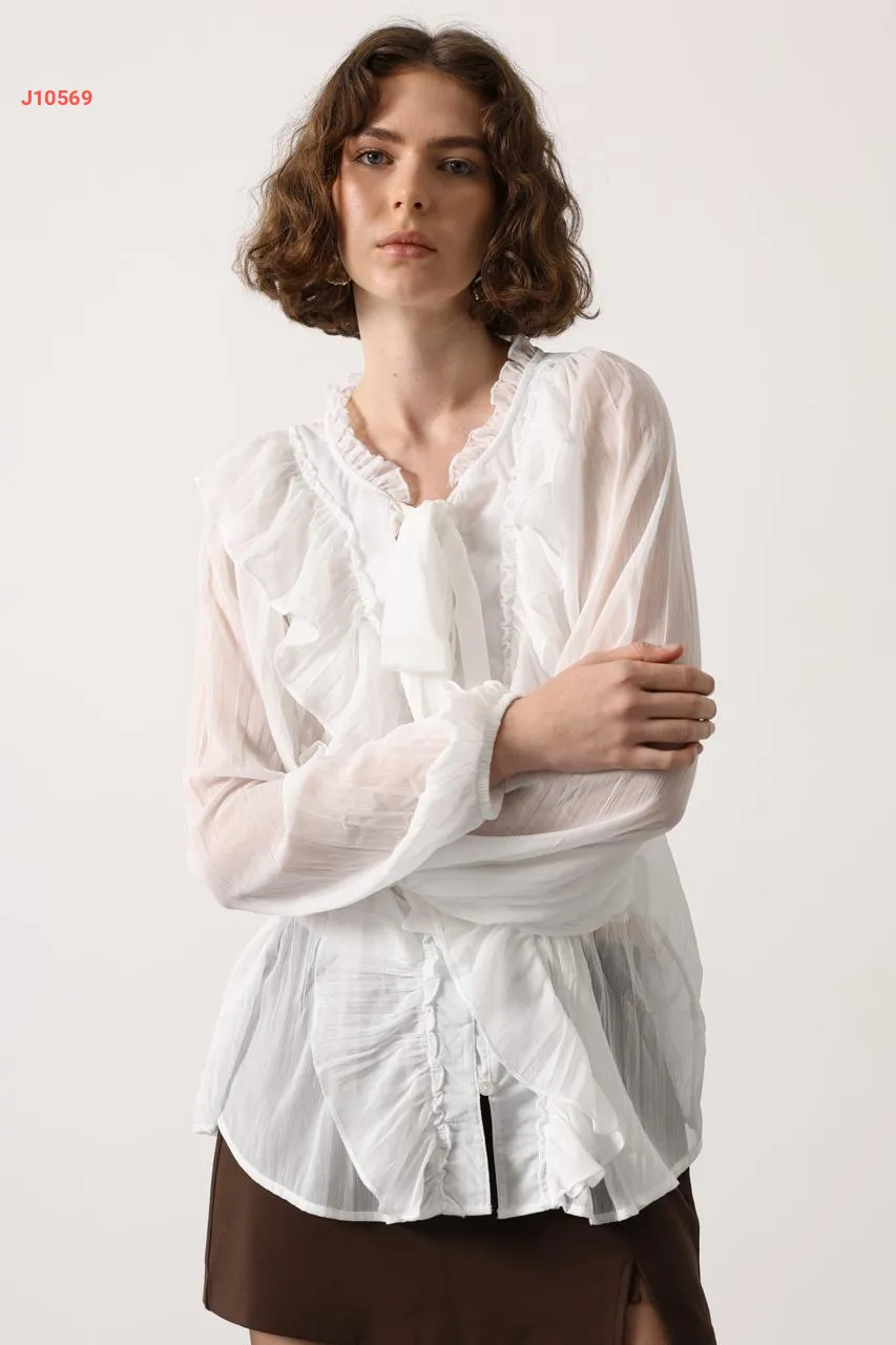 بلوزة شفافة مكشكشة