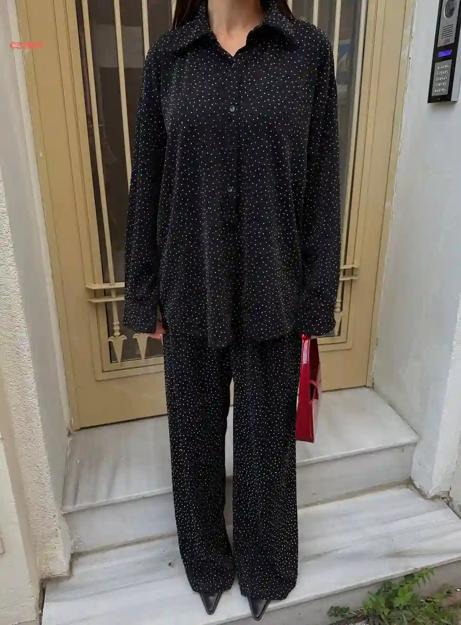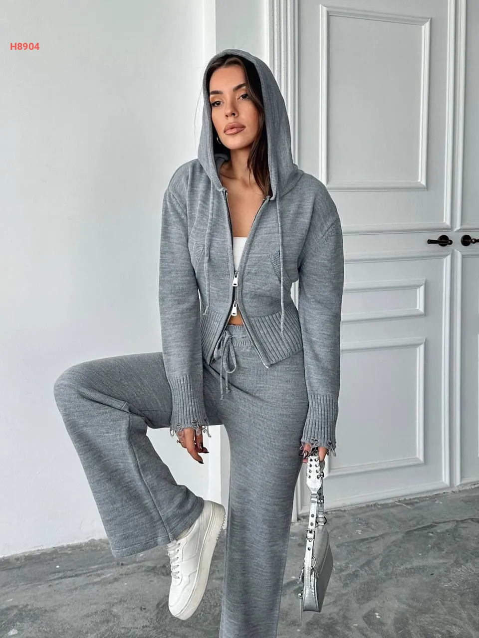 طقم بنطال تريكو وجاكيت بسحاب مزدوج