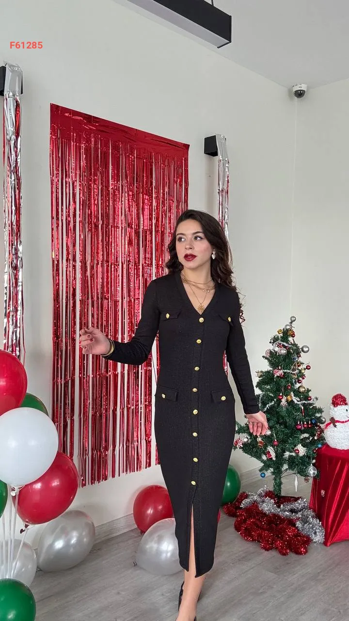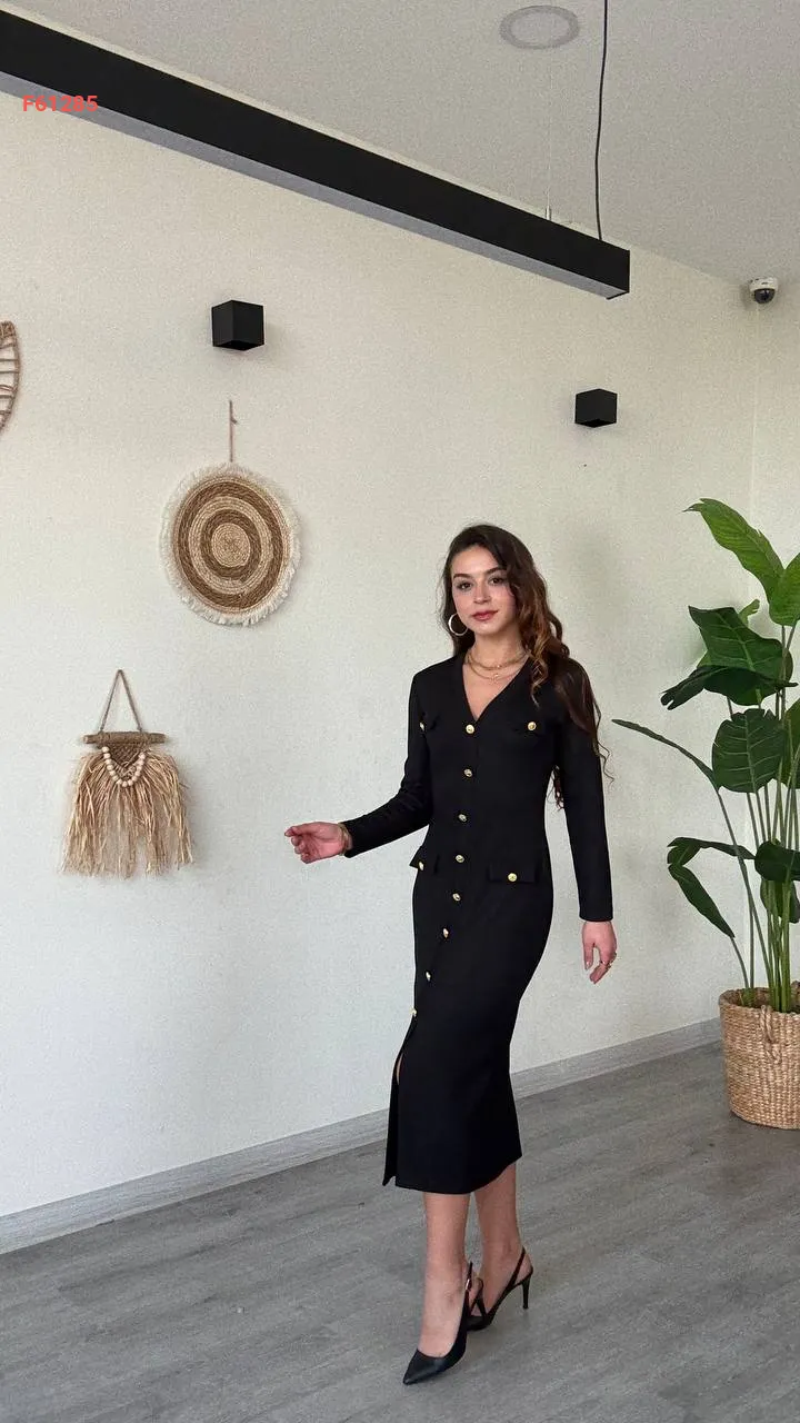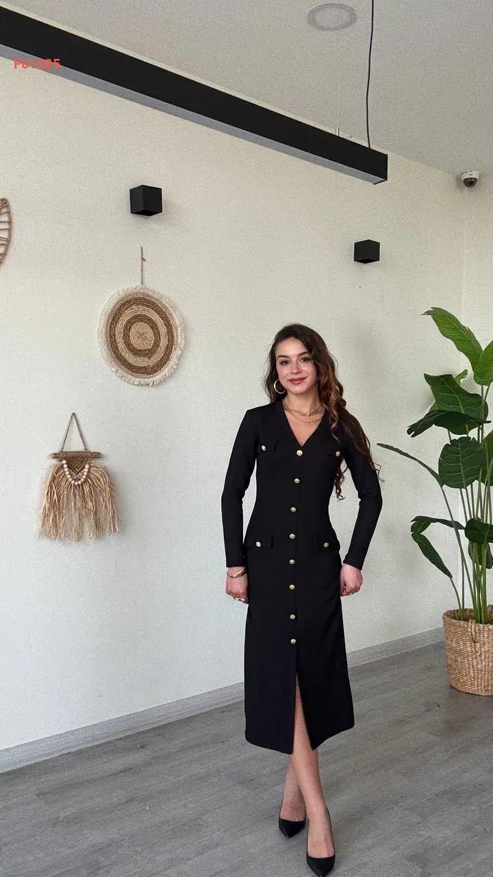 فستان كم طويل لميع بأزرار