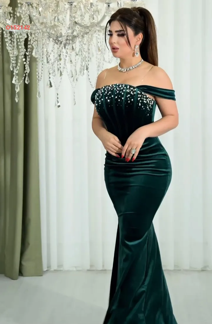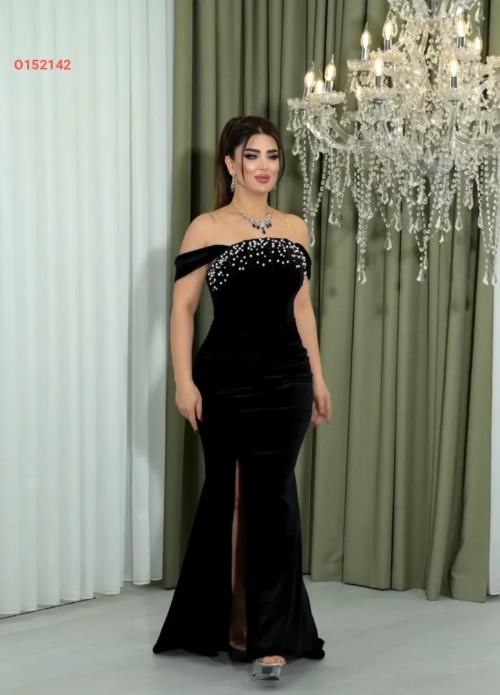 فستان مخمل طويل مزين لولو
