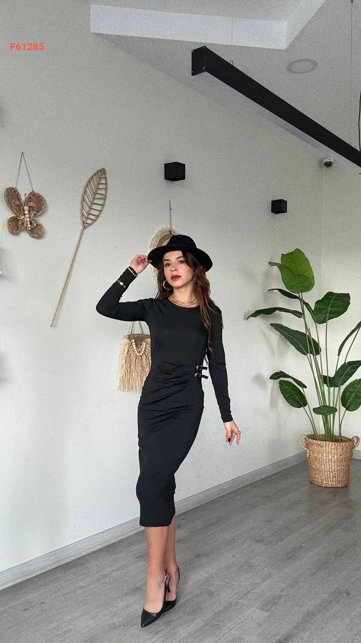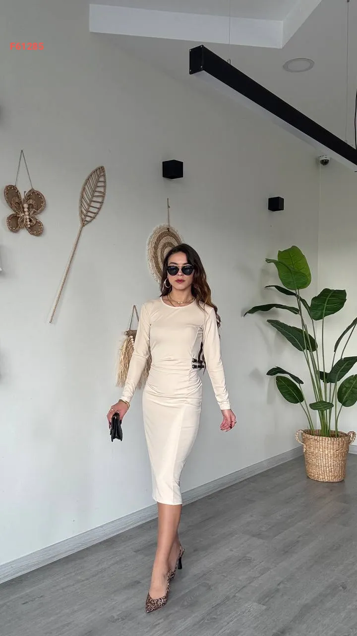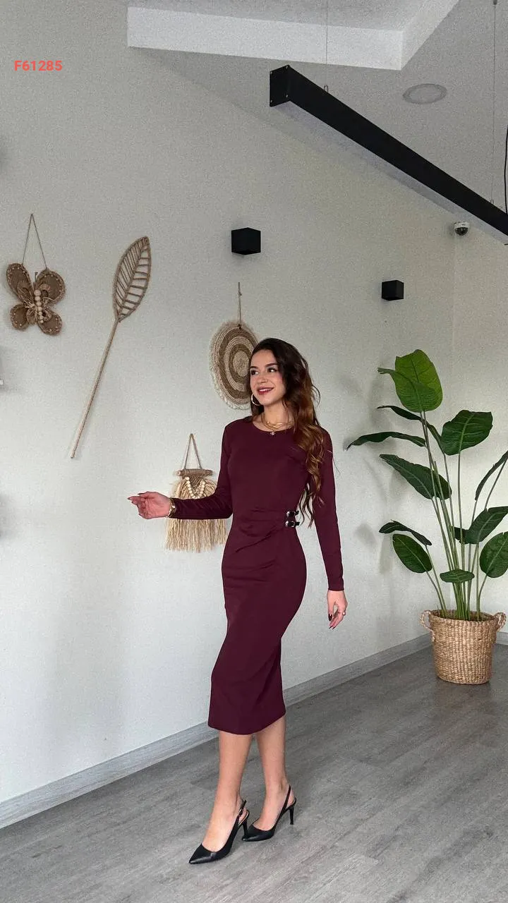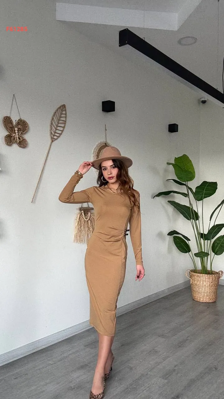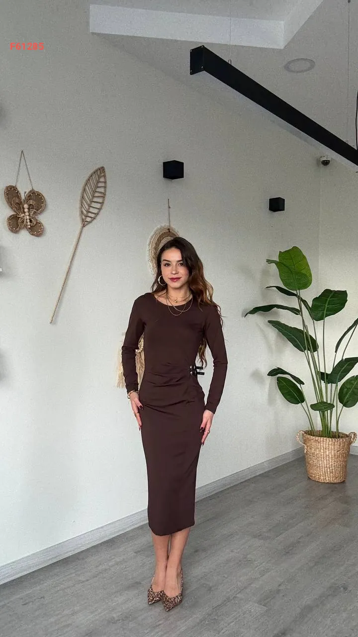 فستان ميدي مجمع بحزام جانبي مزدوج