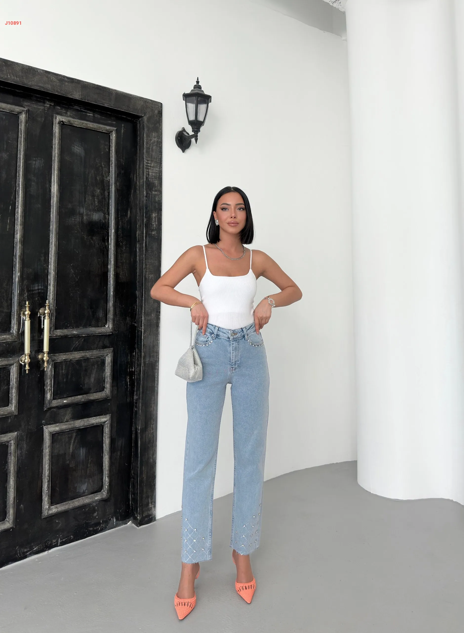 بنطال جينز ستراس من الجيب ومن الاسفل