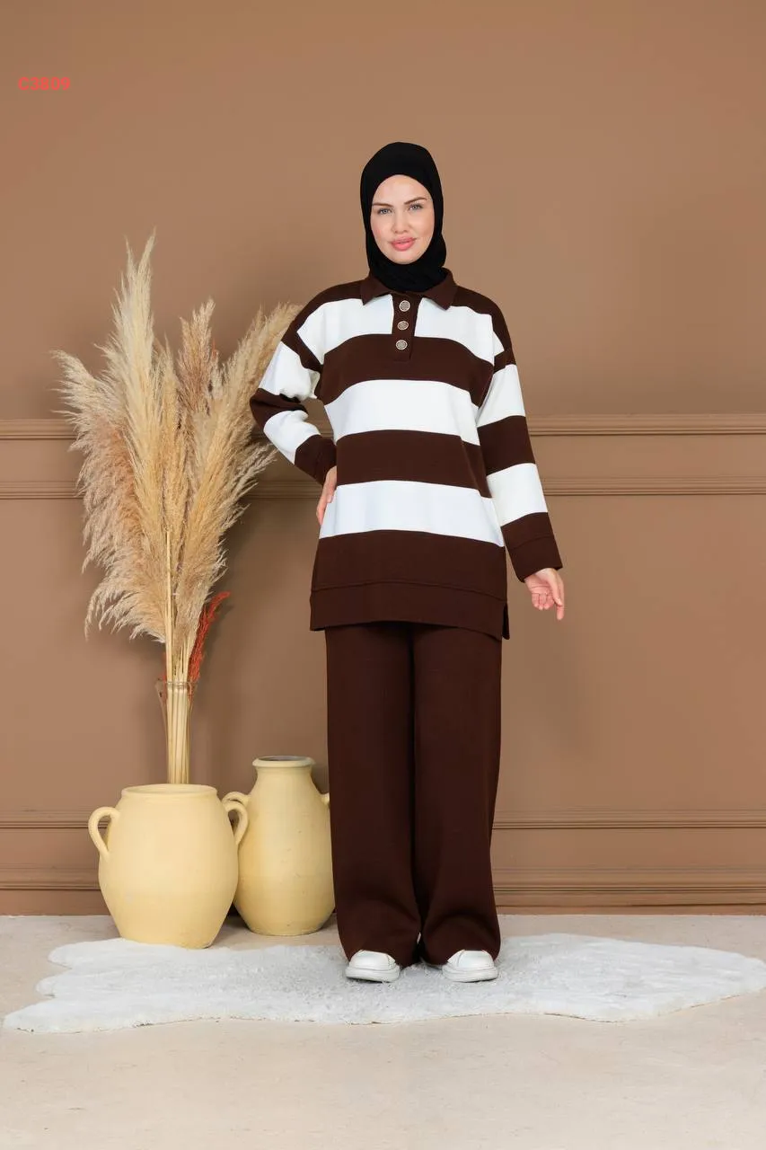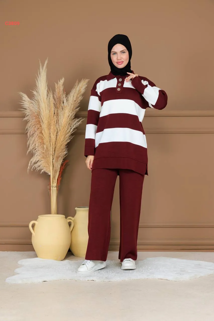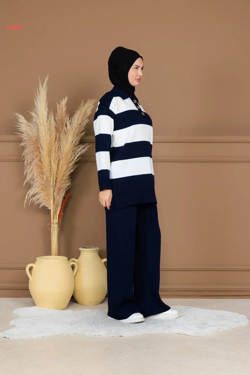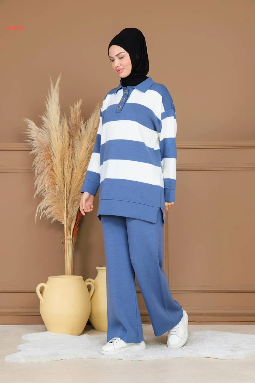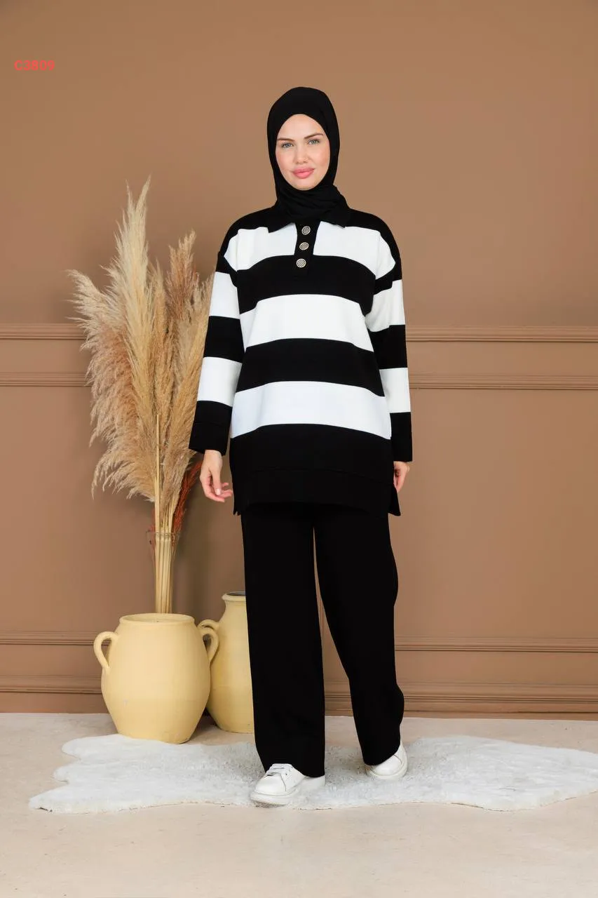 طقم بنطال تريكو وتونيك مخطط