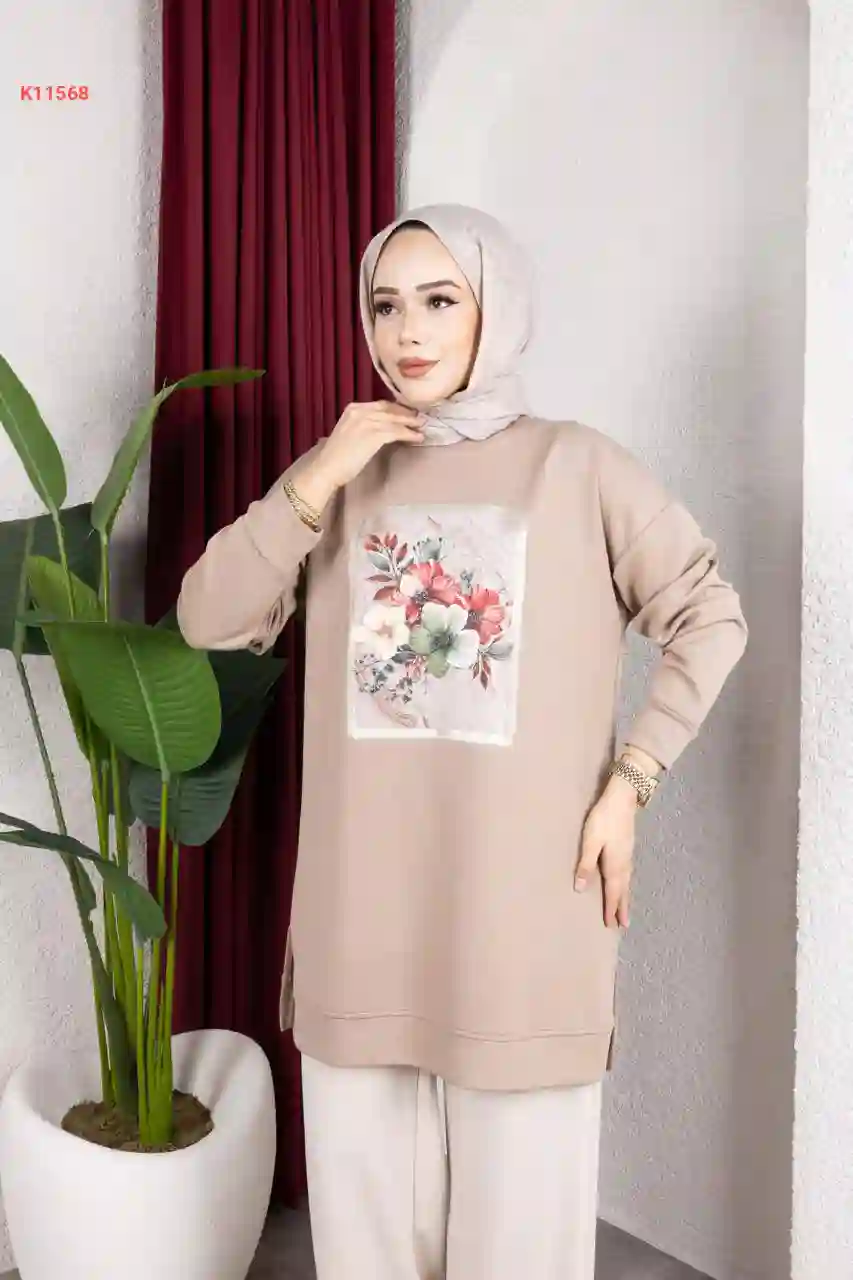 تونيك محجبات مطبوع عالصدر ور...