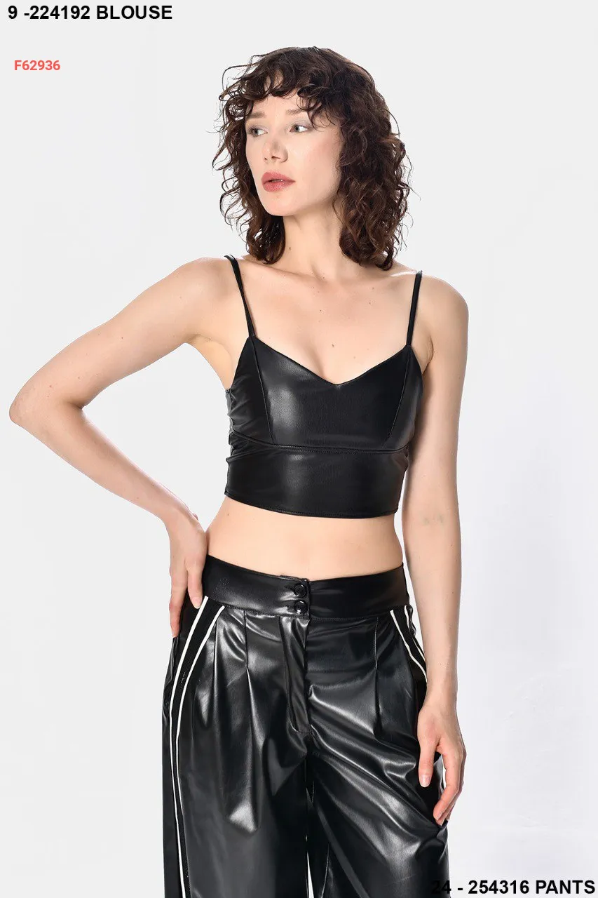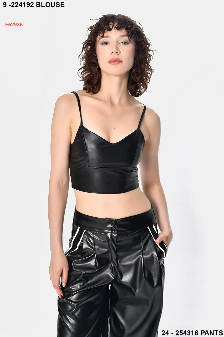 توب جلد بحمالات رفيعة