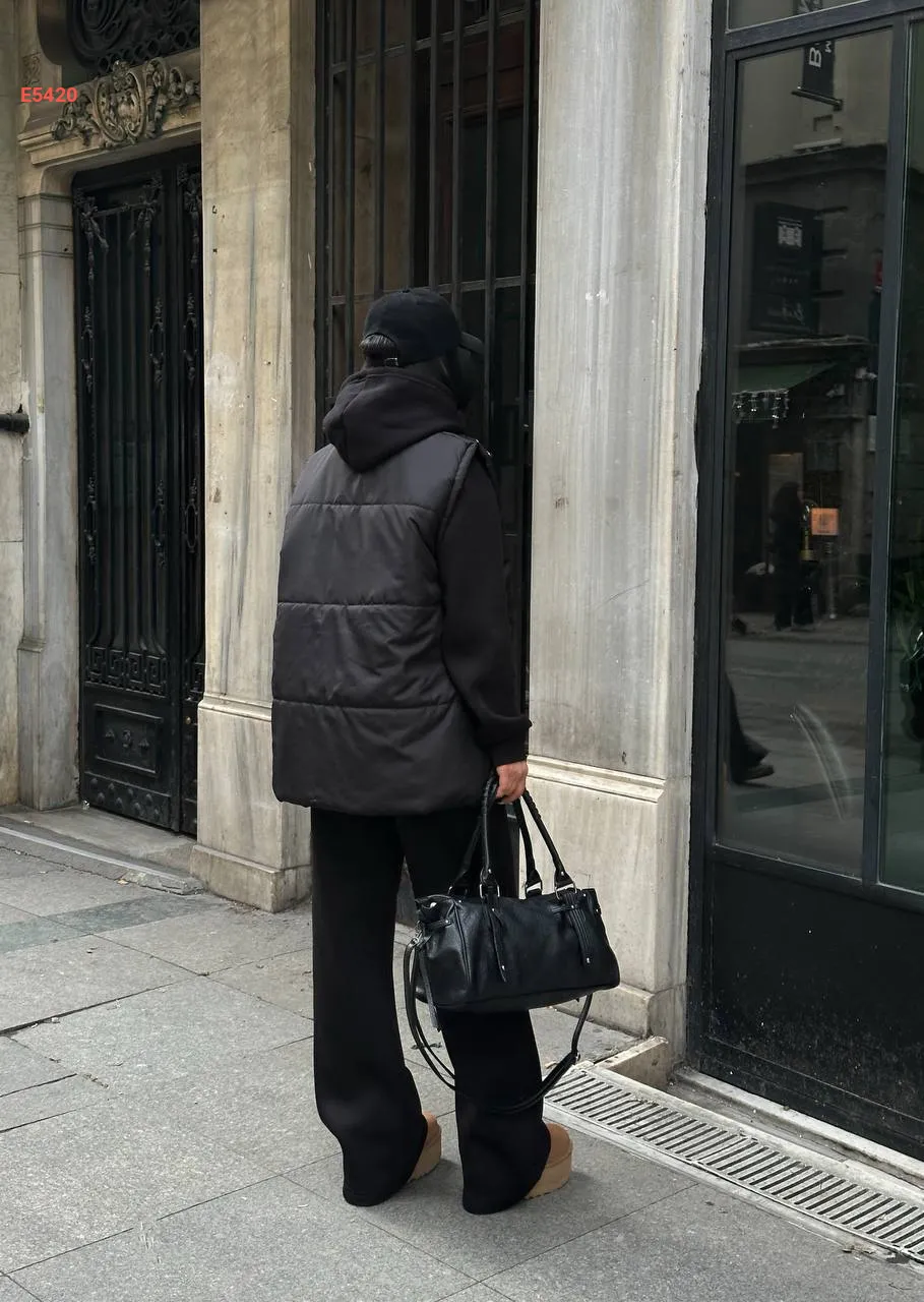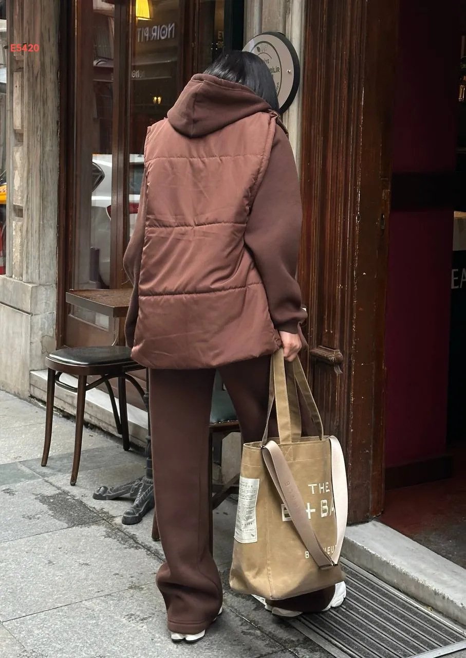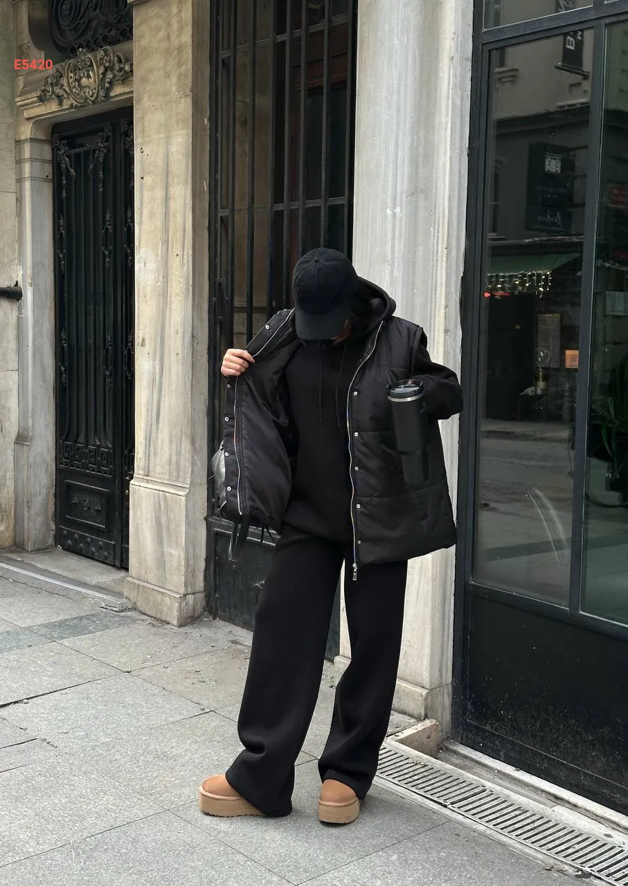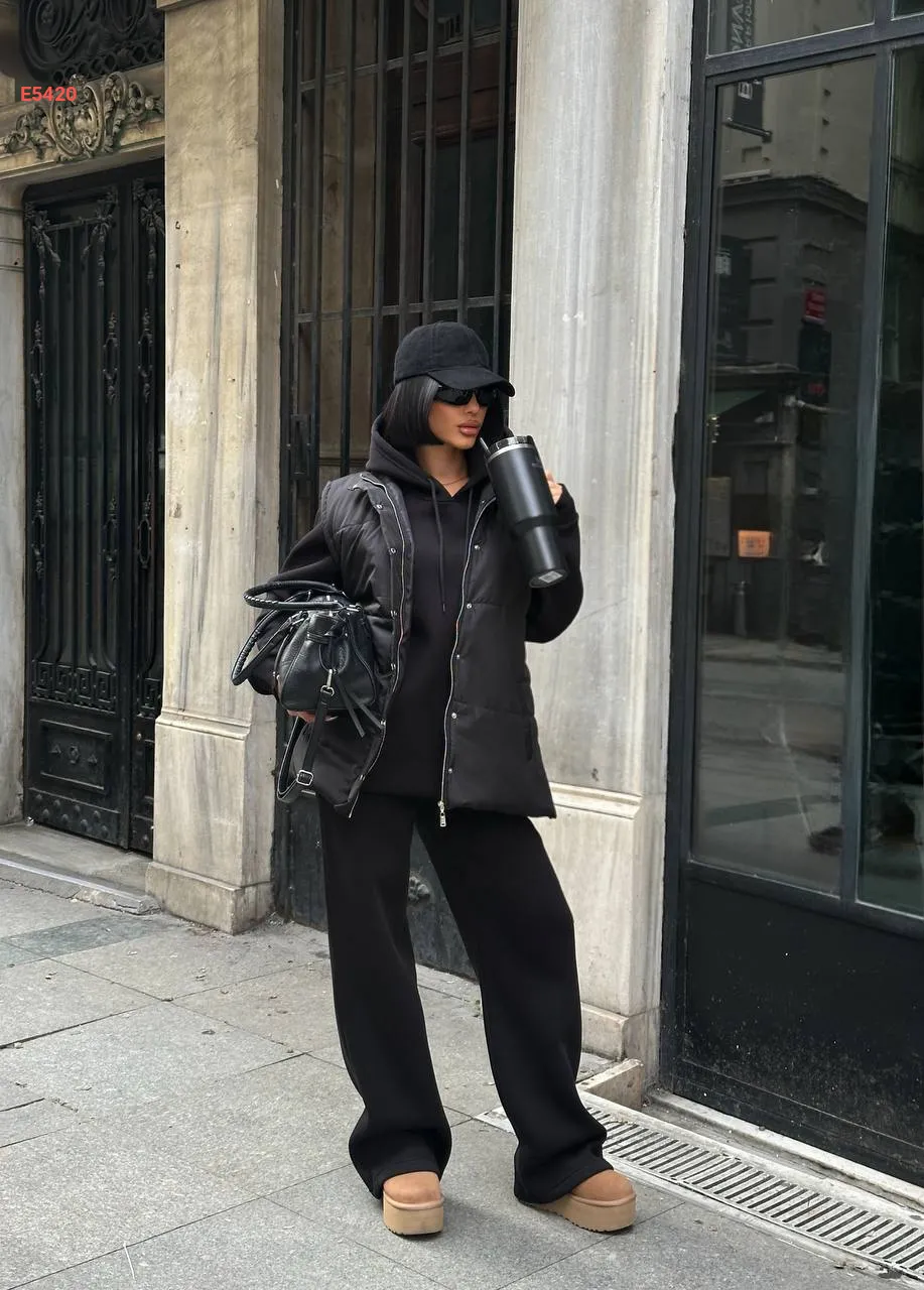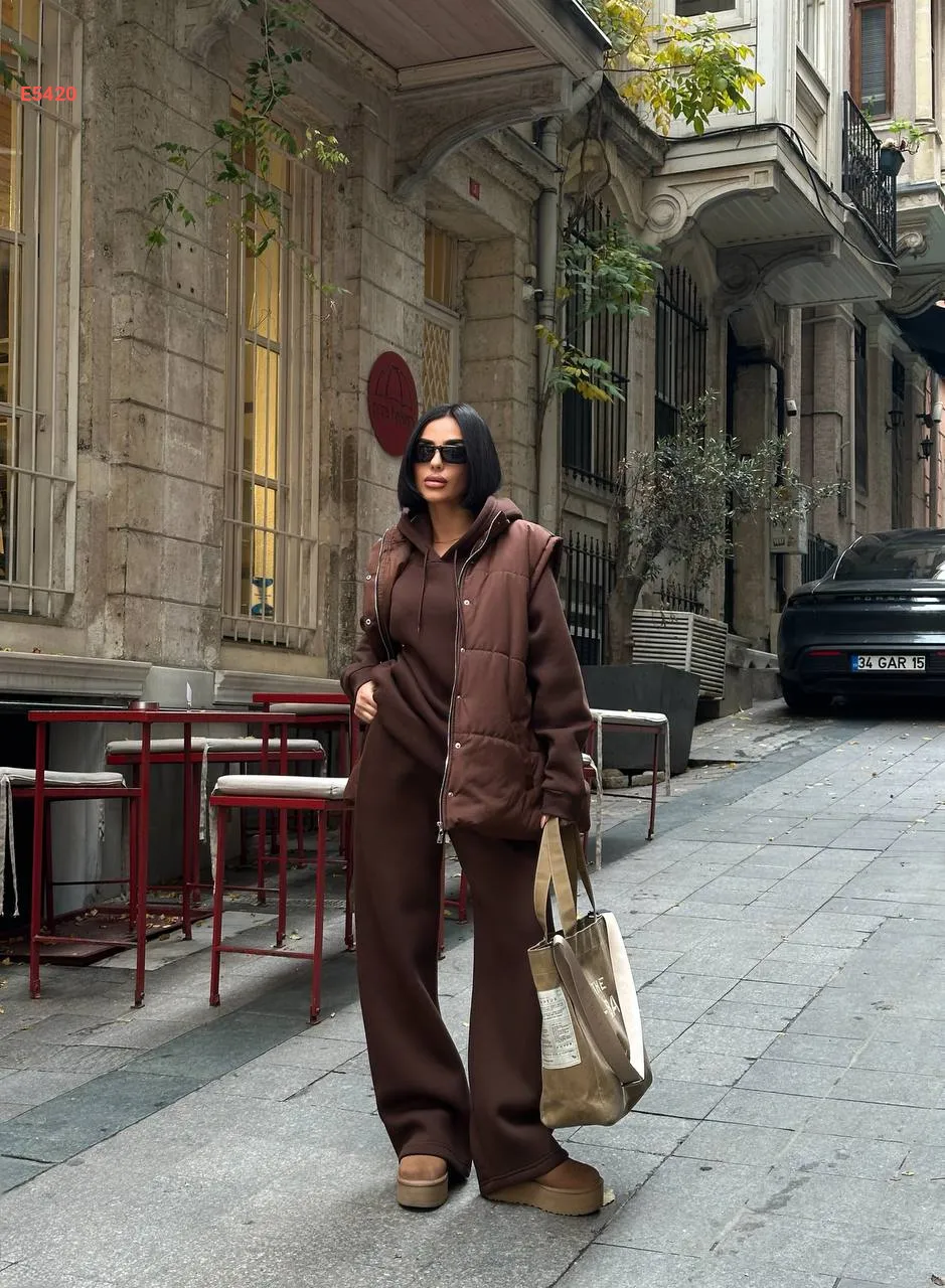 بيجامة 3 قطع فيست سادة ، بسحاب مخفي مع ازرار كببس وجيب ، وغطاء رأس