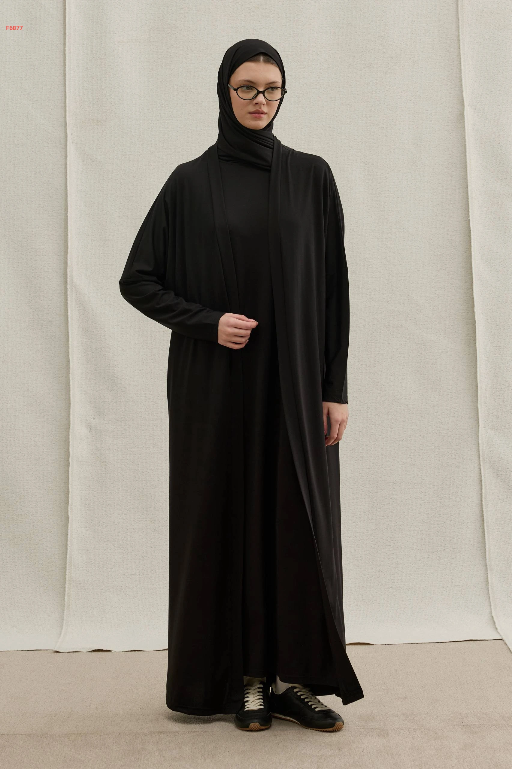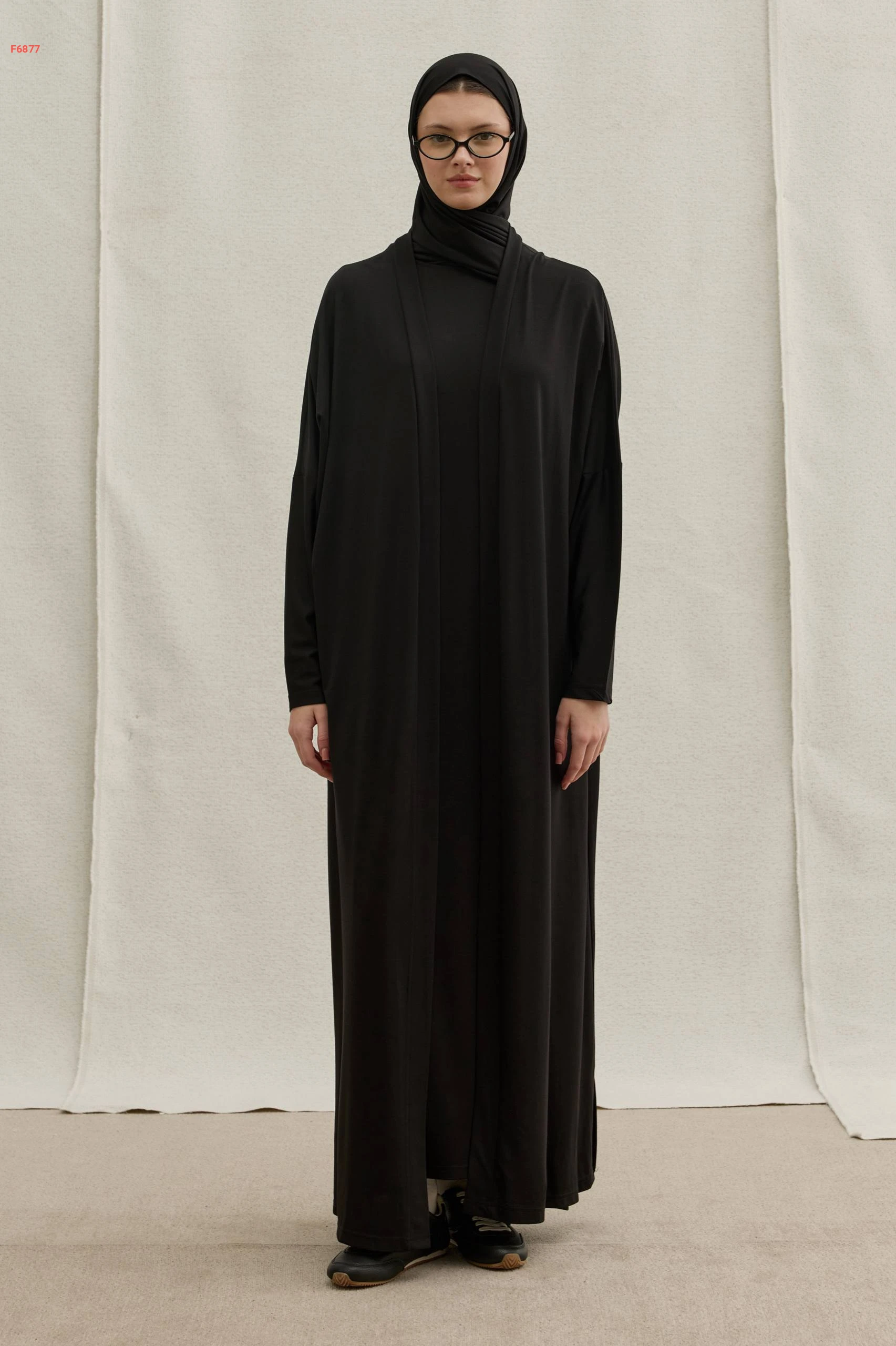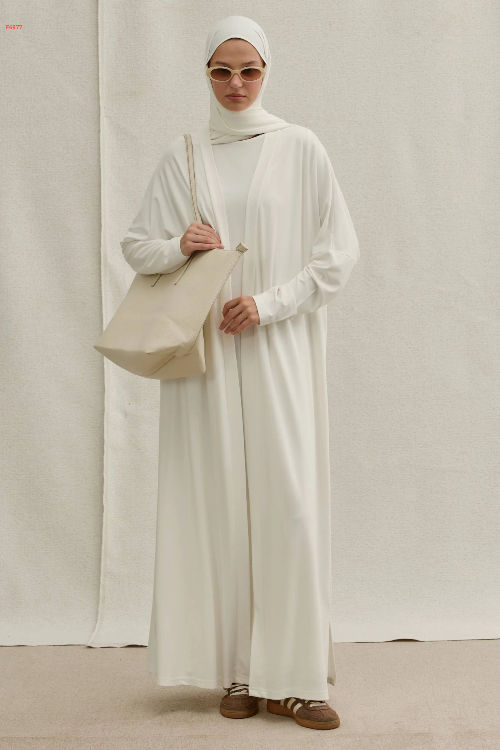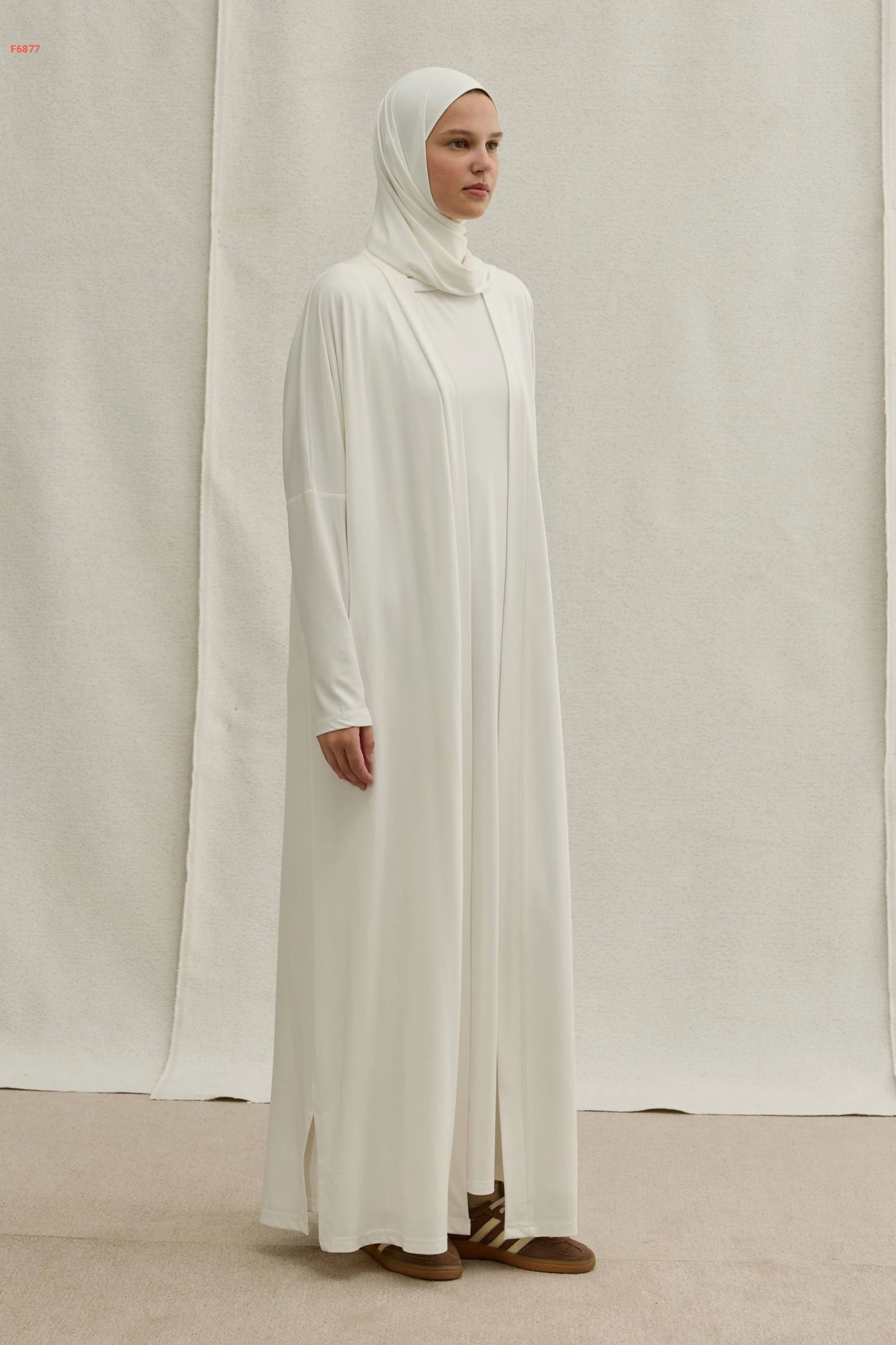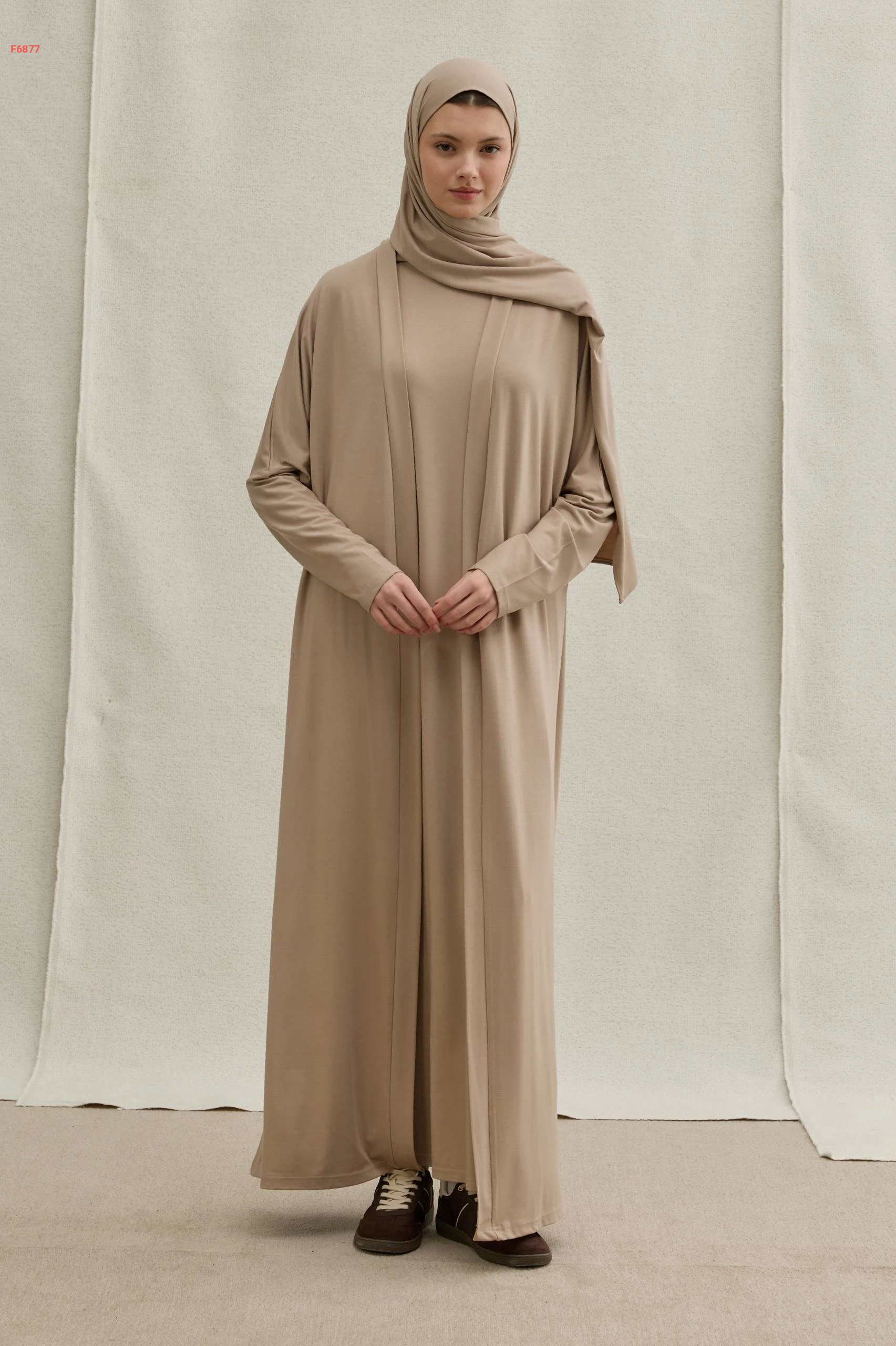 طقم ثلاث قطع (فستان طويل، كارديجان مفتوح، وطرحة متطابقة)