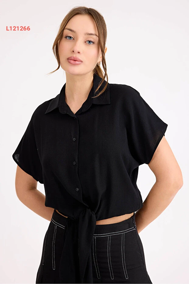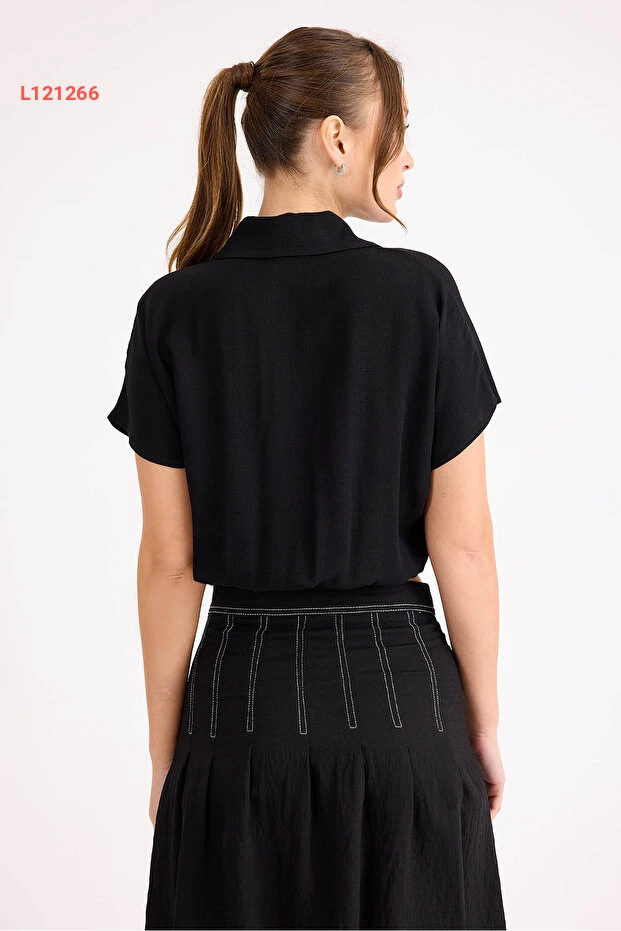 بلوزة قصيرة الأكمام فضفاضة قابلة للإغلاق من فيترين