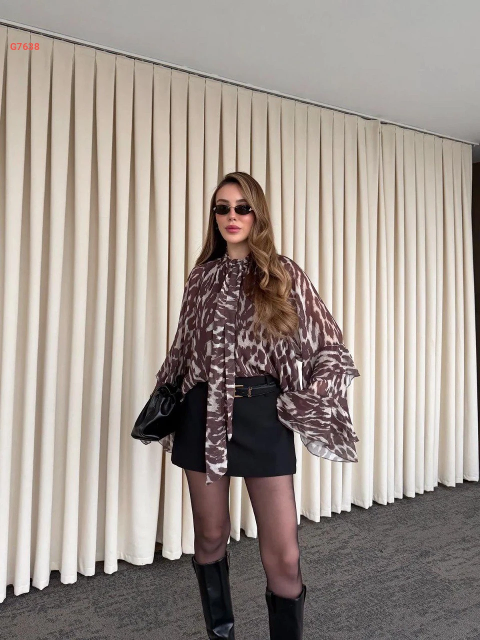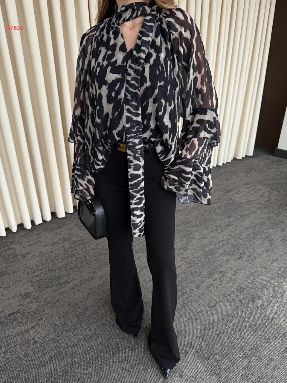 بلوزة تايغر شيفون بأكمام كشكش وفولار