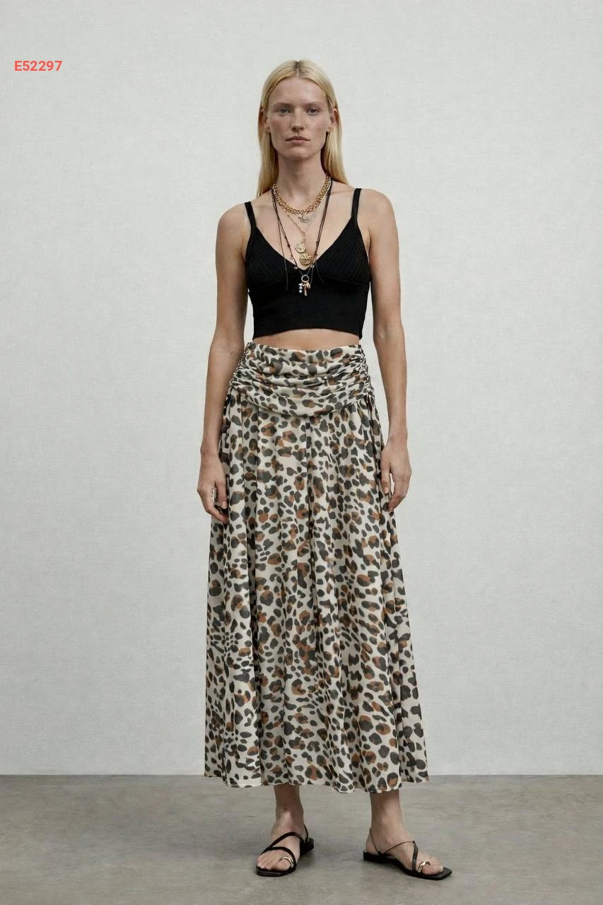 تنورة تايغر طويل مجمعة من الخصر