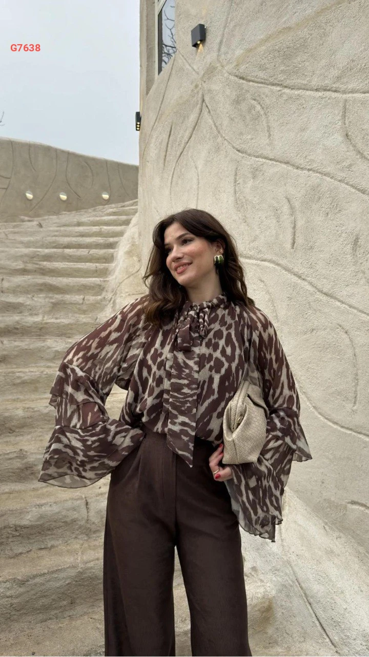 بلوزة شيفون تايغر بأكمام مكشكشة