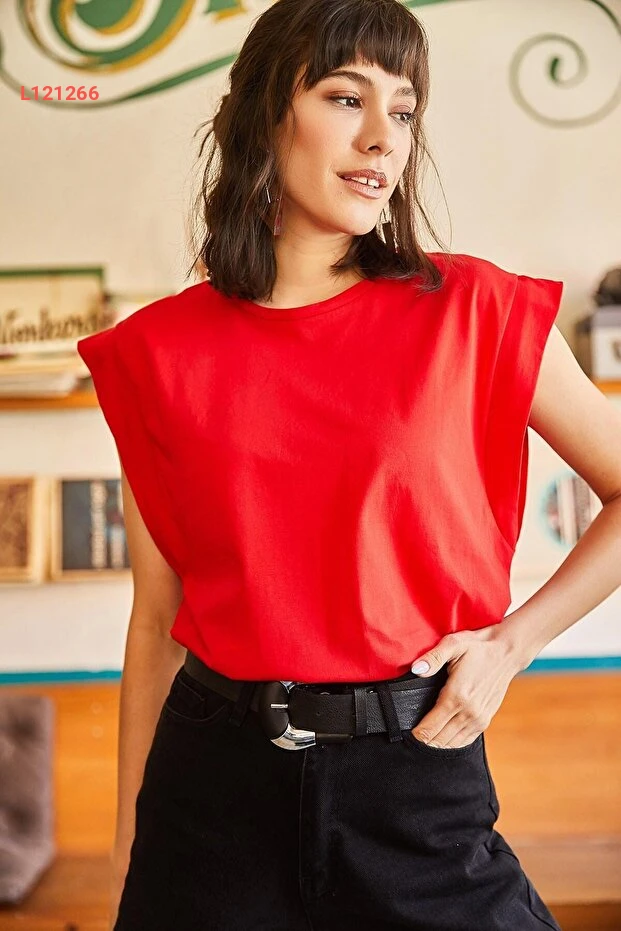 تيشيرت نسائي كاجوال حمراء بأكمام فراشة ومصنوعة من 100% قطن