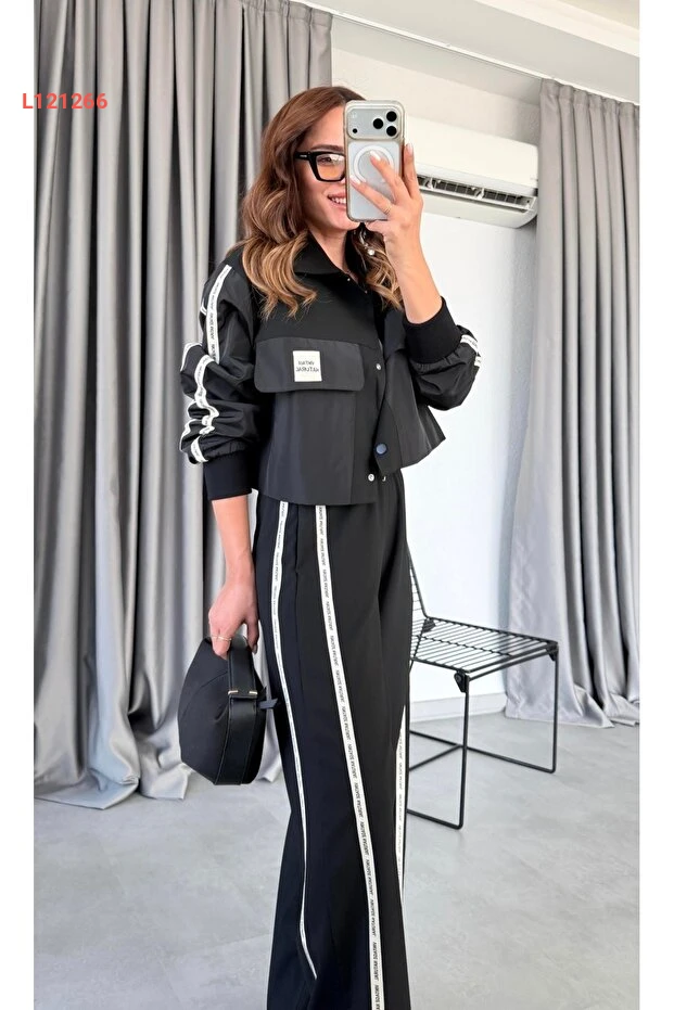 استمتعي بأناقة عصرية مع مجموعة timagna المميزة، التي تتكون من سترة كروب عصرية مزينة بتفاصيل شريطية وبناطيل واسعة مع خطوط متقنة. تمنحك هذه الإطلالة الفريدة مزيجًا مثاليًا من الراحة والأناقة، لتكوني دائمًا محط الأنظار في أي مناسبة. ارتديها مع أحذية مفضلة لديك واخرجي بثقة!