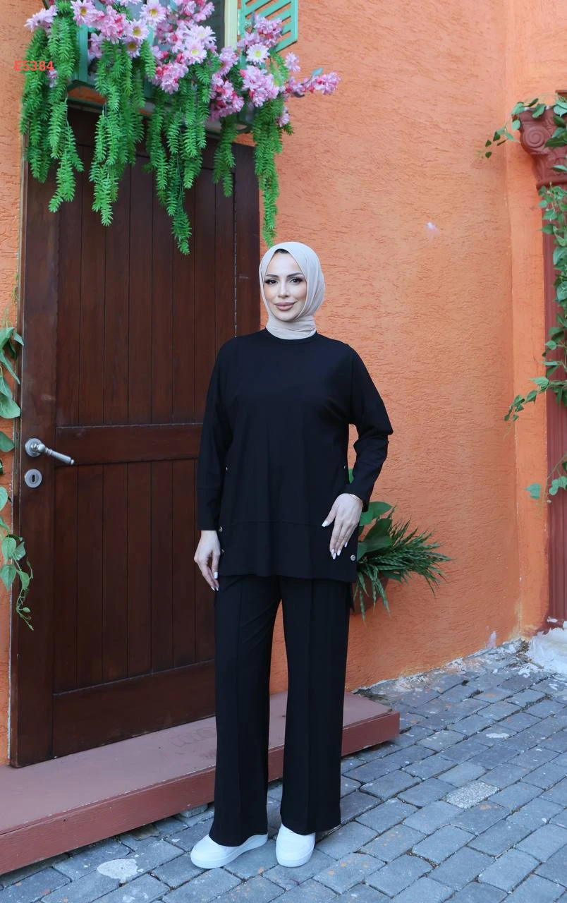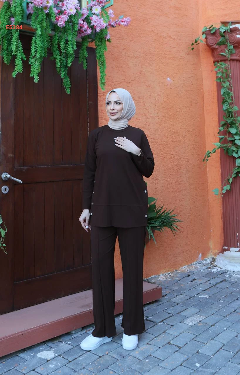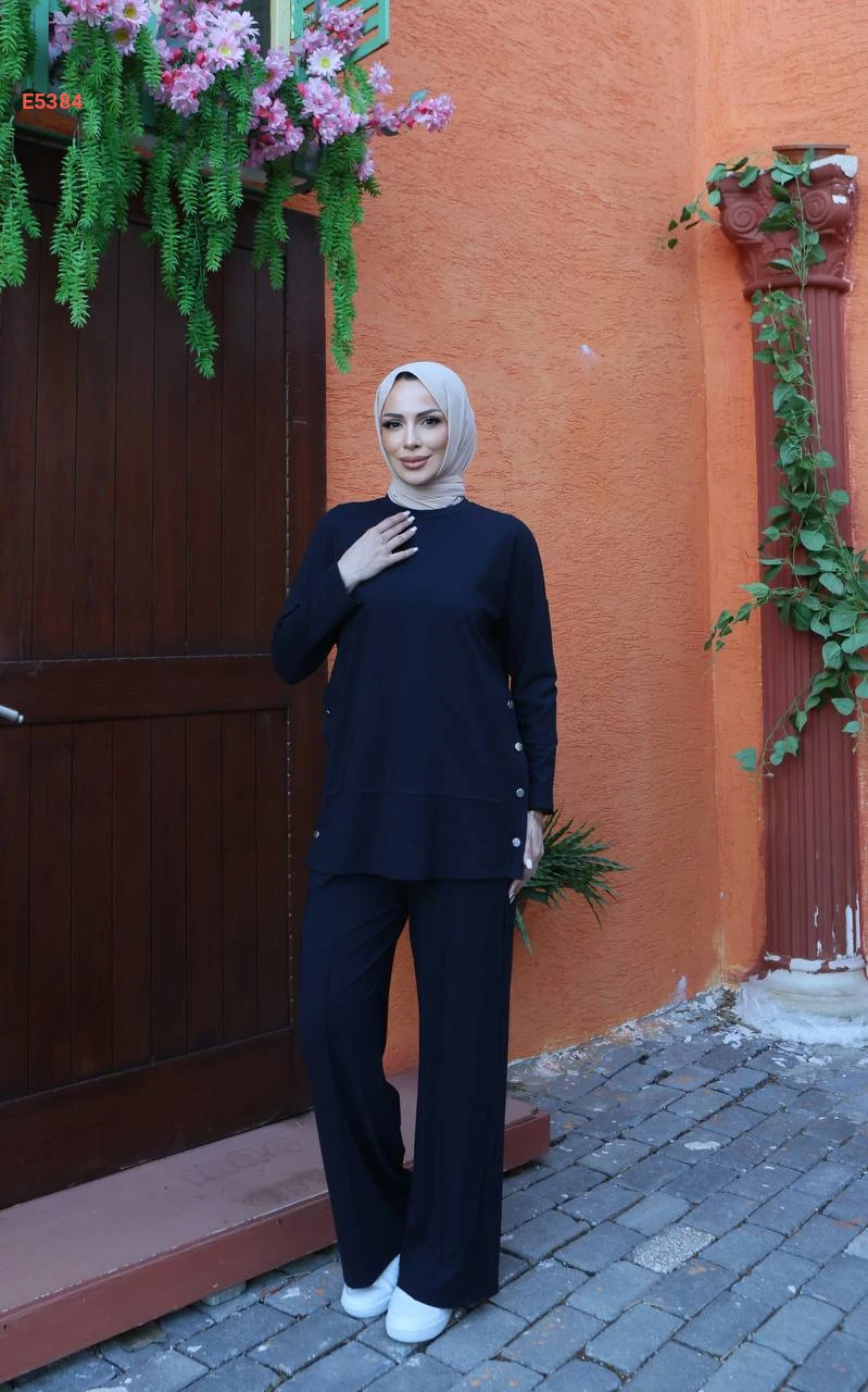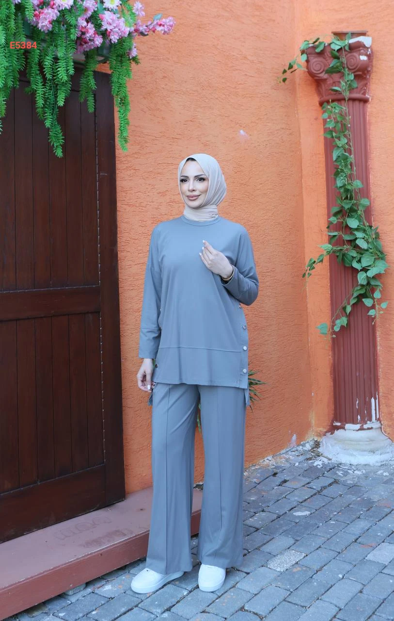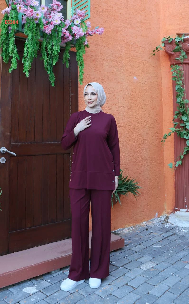 طقم بنطال قطعتين سادة بأزرار جانبية
