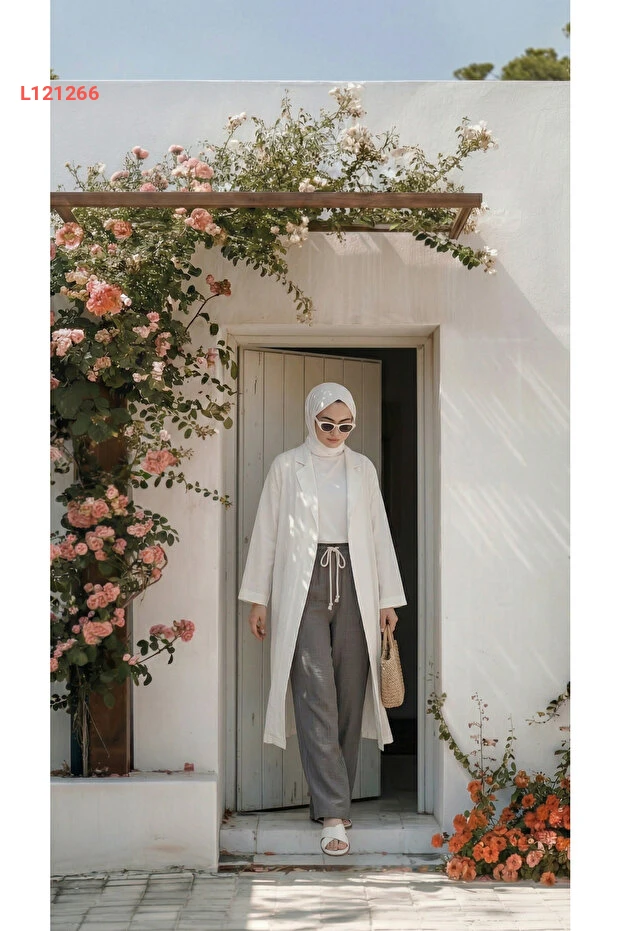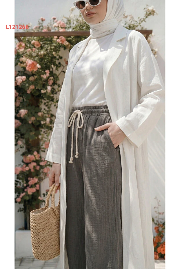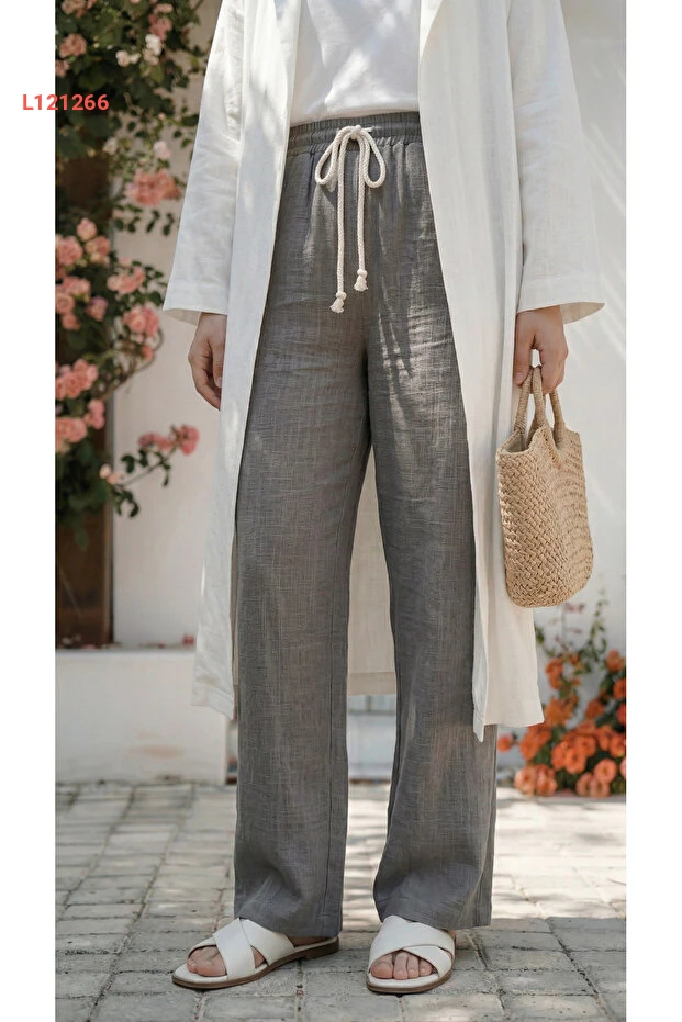 بنطال بالازو نسائي رمادي من الكتان - مناسب للملابس المحتشمة وغير شفاف