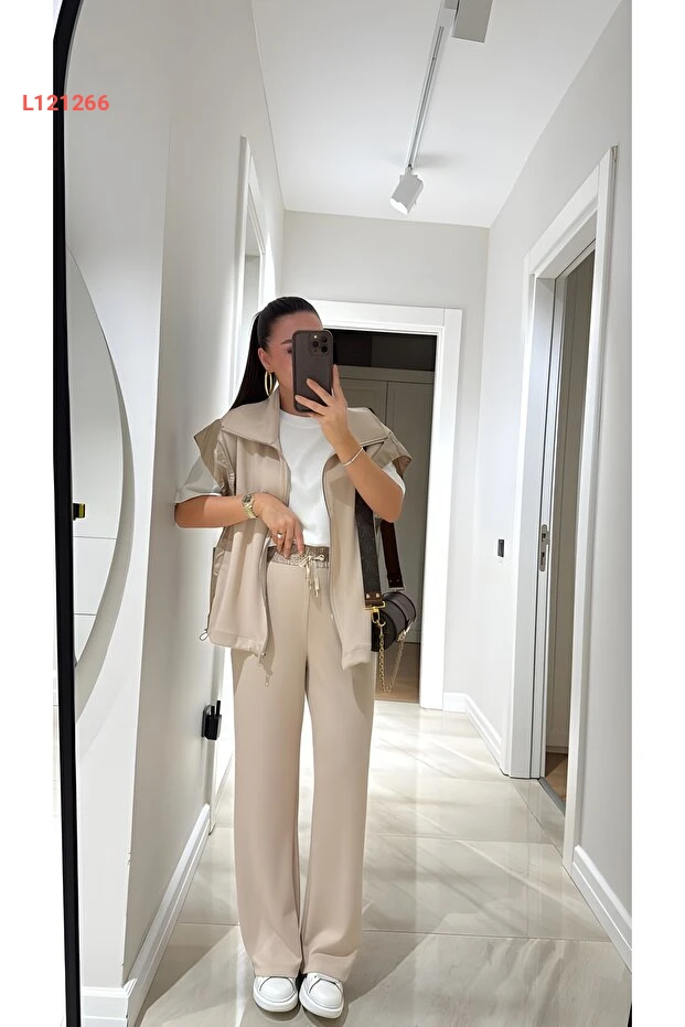 طقم بنطلون وست فخمة للسيدات بخصر مرن وسحاب من تي إل جي GİYİM