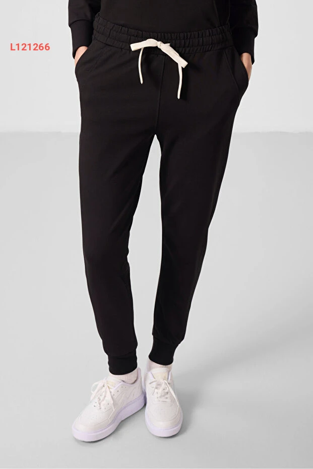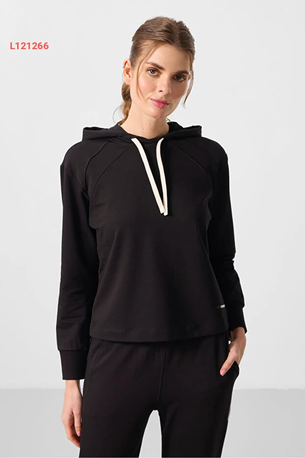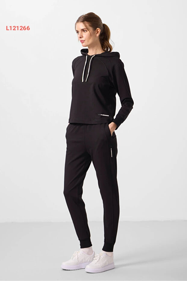 تومي لايف طقم رياضي نسائي أسود بغطاء رأس بتصميم فضفاض
