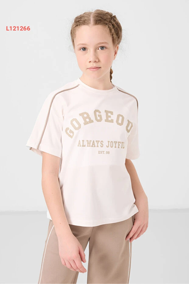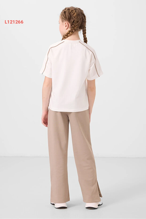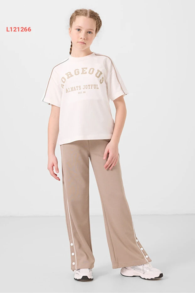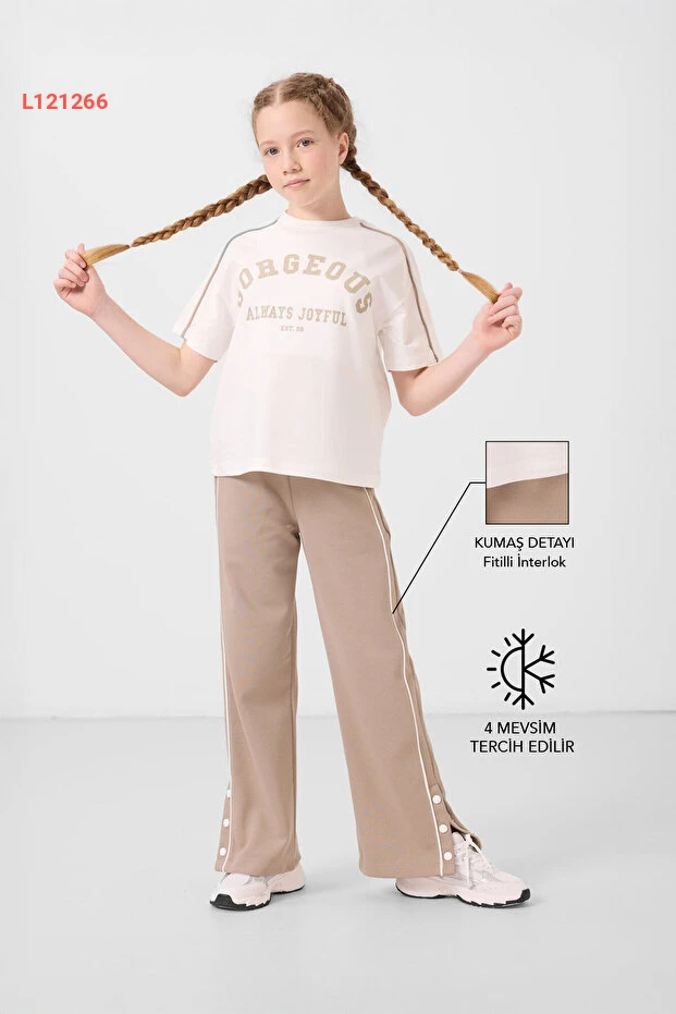 طقم بنطلون بالاسو مع تفاصيل أزرار للفتيات من تومي لايف - بيج داكن 75172