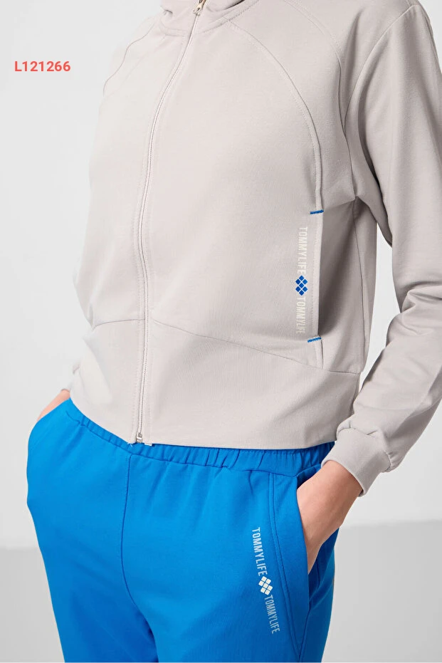 طقم سبورت نسائي بألوان حجرية مع سحاب وكابوشون من تومي لايف - 95328