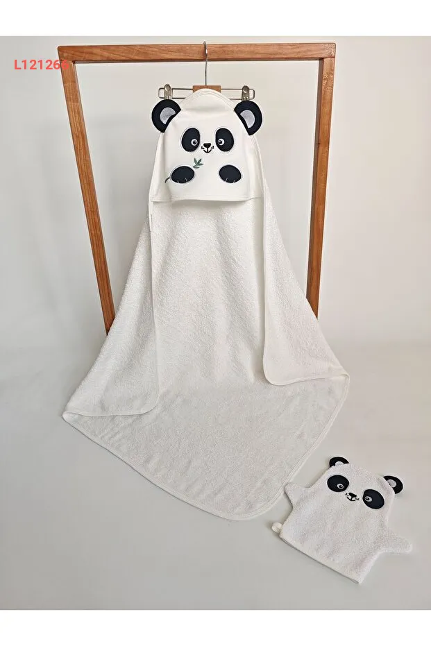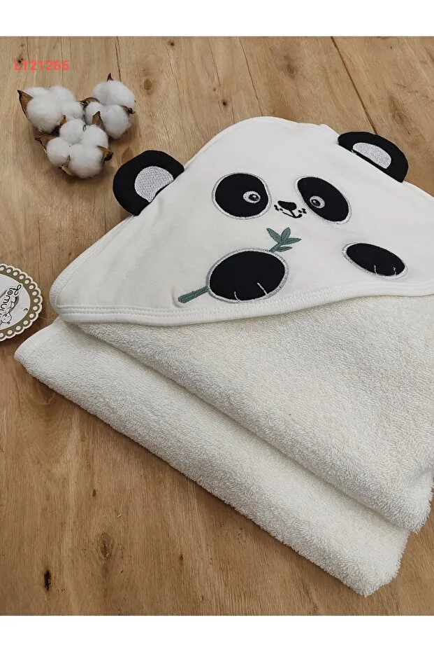منشفة حمام ناعمة للأطفال من 100% قطن مع غطاء - مزين بتطريز باندا - ناعم وامتصاص ممتاز