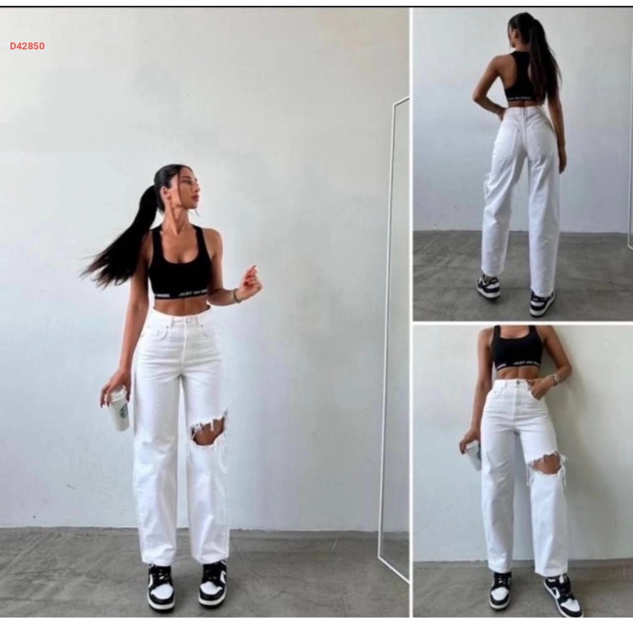 بنطال جينز أبيض ممزق