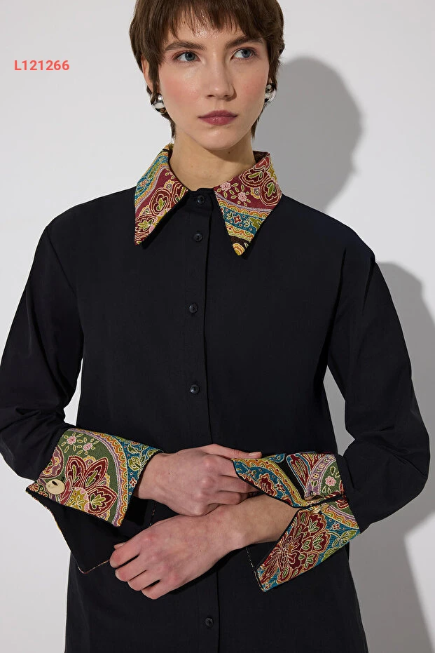 استمتع بأناقة لا تُضاهى مع قميص "Touche Prive" المزخرف بتفاصيل نقشات إتنيك الفريدة. يجمع بين الراحة والتصميم العصري، مما يجعله الخيار المثالي لإطلالة يومية مميزة أو لقيامك بإطلالات غير تقليدية في المناسبات الخاصة. احصل على لمسة من الثقافة والأناقة في خزانة ملابسك!