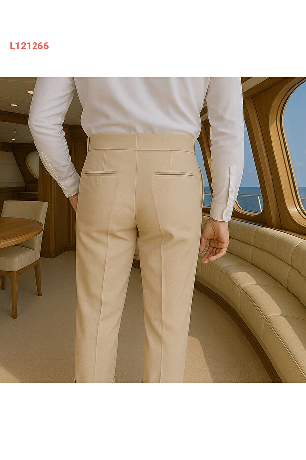 بنطلون كتان إيطالي رجالي بخصر مزخرف بأسلوب أولد موني