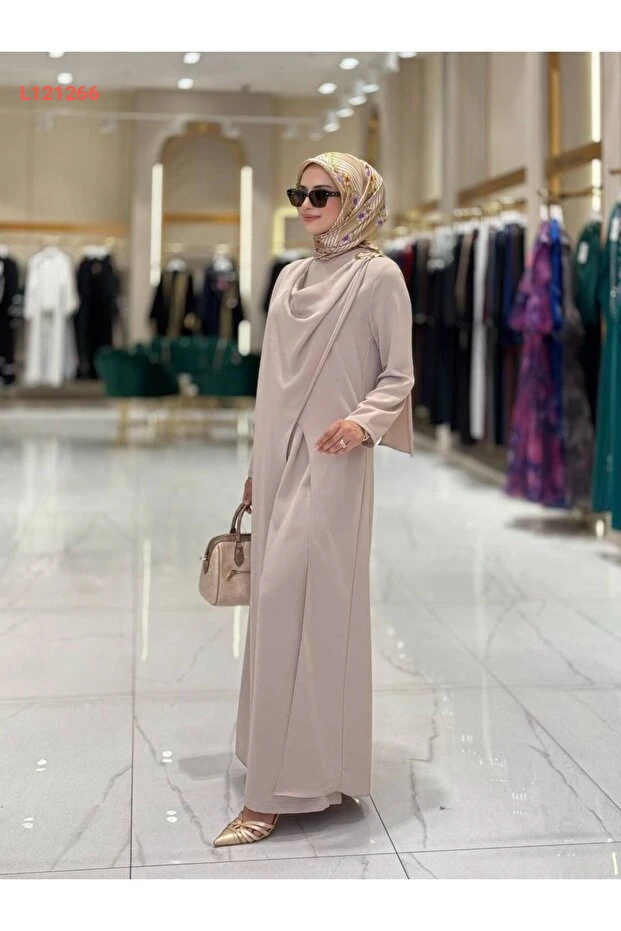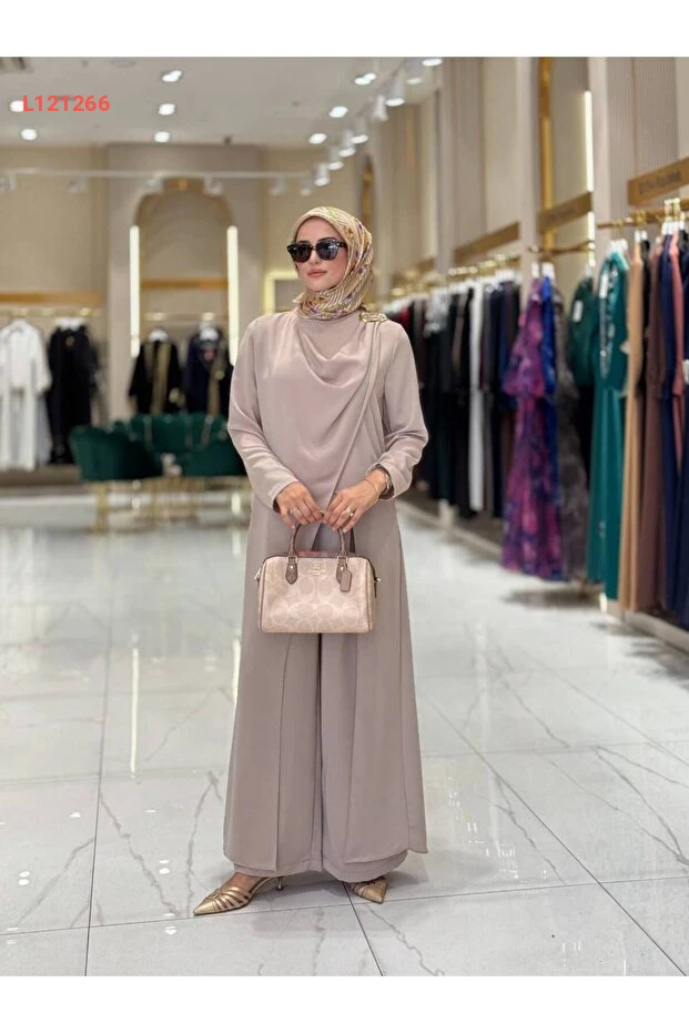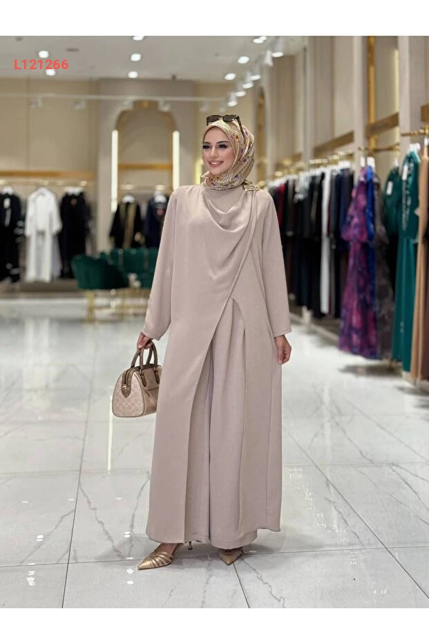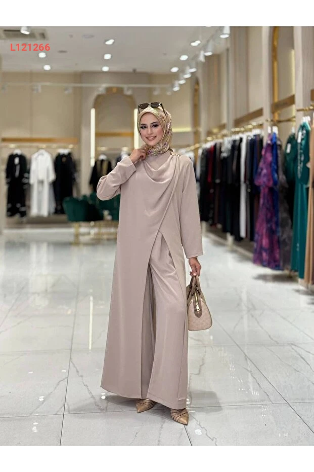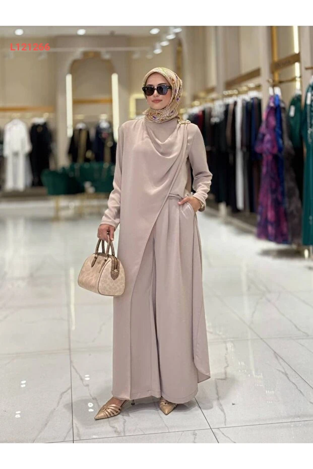 استمتع بأناقة فريدة مع طقم تونيك وبنطلون تراديوز، الذي يتميز بتصميم غير متماثل وأزرار ذهبية لافتة. يجمع هذا الطقم بين الراحة والفخامة، مما يجعله الخيار المثالي لكل المناسبات. ارتدي هذا الطقم لإطلالة عصرية تبرز شخصيتك المميزة.
