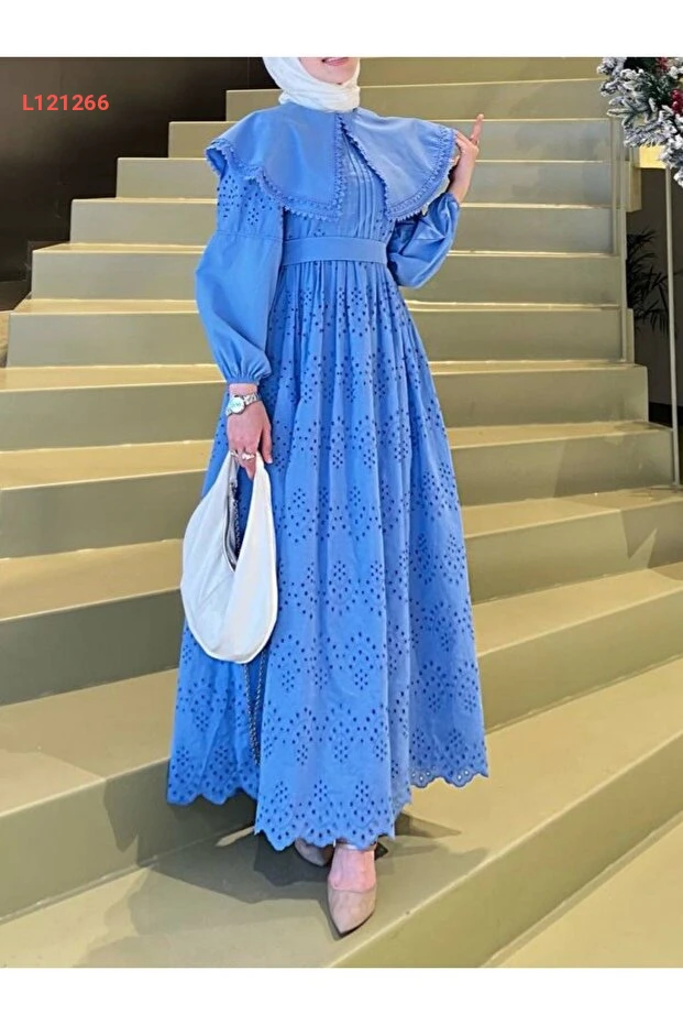 استمتعي بأناقة لا مثيل لها مع فستان Modamorfo Pelerin Yaka Dantel Detaylı بلون الموفا الرائع. يمنحكِ هذا التصميم الفريد أناقة جاذبة بفضل تفاصيل الدانتيل الفاخرة وكتف البيليرين، مما يجعله خياراً مثالياً للمناسبات الخاصة. اجعلي لحظاتك تتألق بتألق هذا الفستان الذي يجمع بين الجمال والراحة.