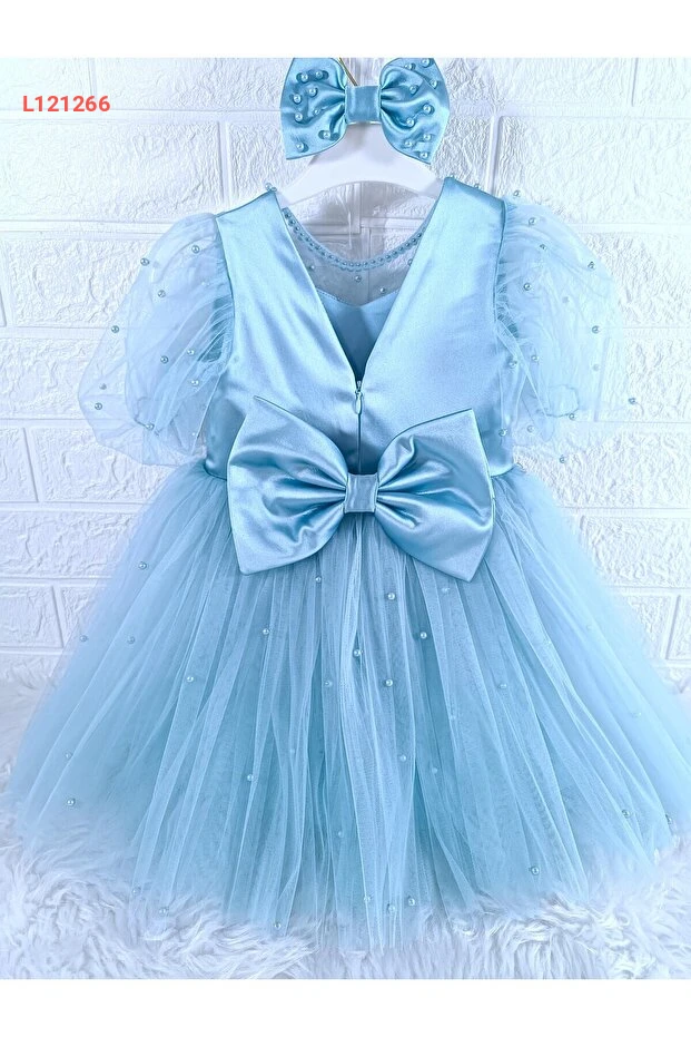 فستان سهرة للأطفال مزين بالتول والساتان مع لؤلؤ للاحتفالات والأعياد