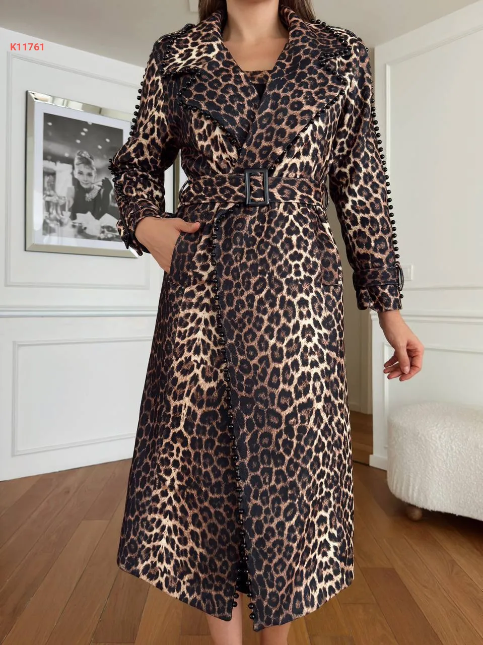 ترانشكوت تايغر مزين لولو مع حزام