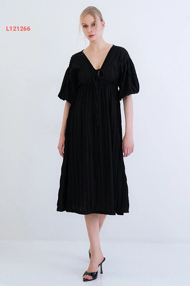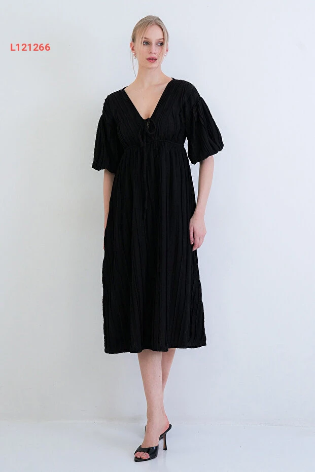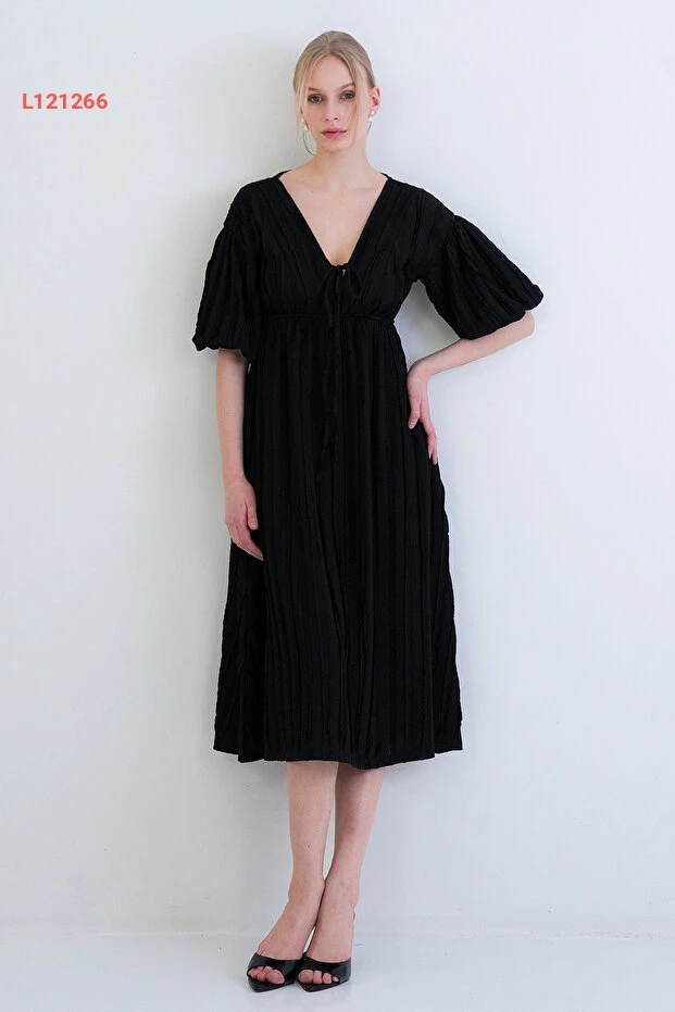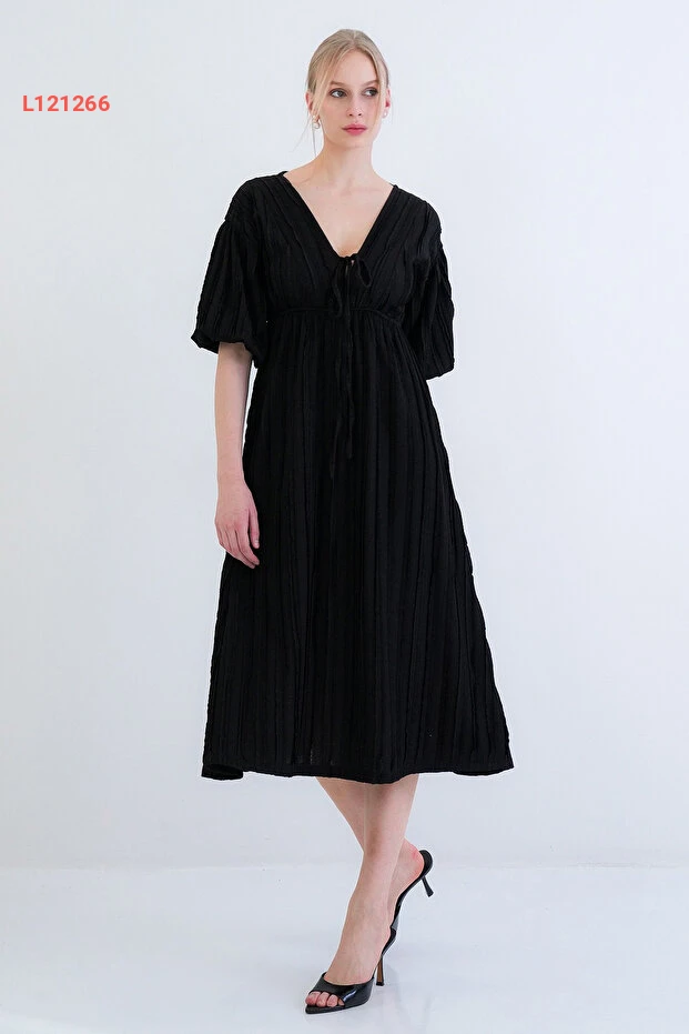 Trend Alaçatı Stili Siyah V Yaka Bağlama Detaylı Fırfır Kumaş Maxi Boy Elbise عالي الجودة. مثالي للاستخدام اليومي مع متانة وتصميم ممتاز.