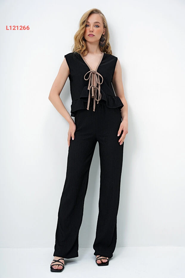 استمتع بأناقة لا مثيل لها مع مجموعة Trend Alaçatı Stili الأنيقة، حيث يتكون هذا الطقم من يليه متقنة بتفاصيل ربط ساحرة وبنطلون مريح يضمن لك مظهراً عصريًا خلابًا. مصمم بألوان داكنة وملمس فريد، يجمع بين الأناقة والراحة، مما يجعله خياراً مثالياً لأي مناسبة. ارتدي هذا الطقم وكن محط الأنظار في كل مكان!