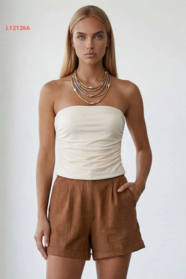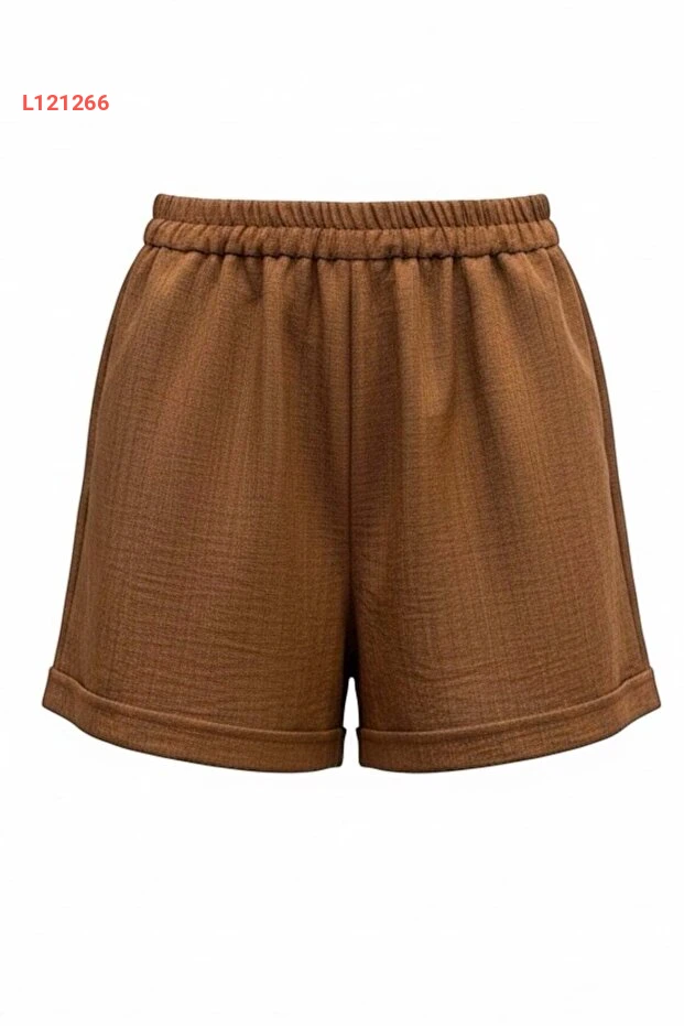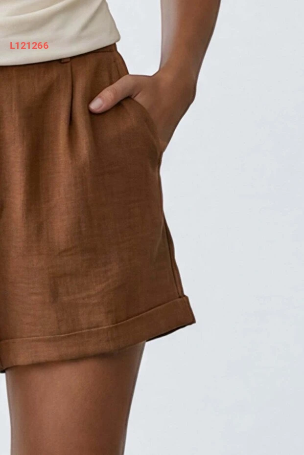 شورت كتان بني بأسلوب ألاجاتي مع جيوب مزدوجة وسحاب مخفي