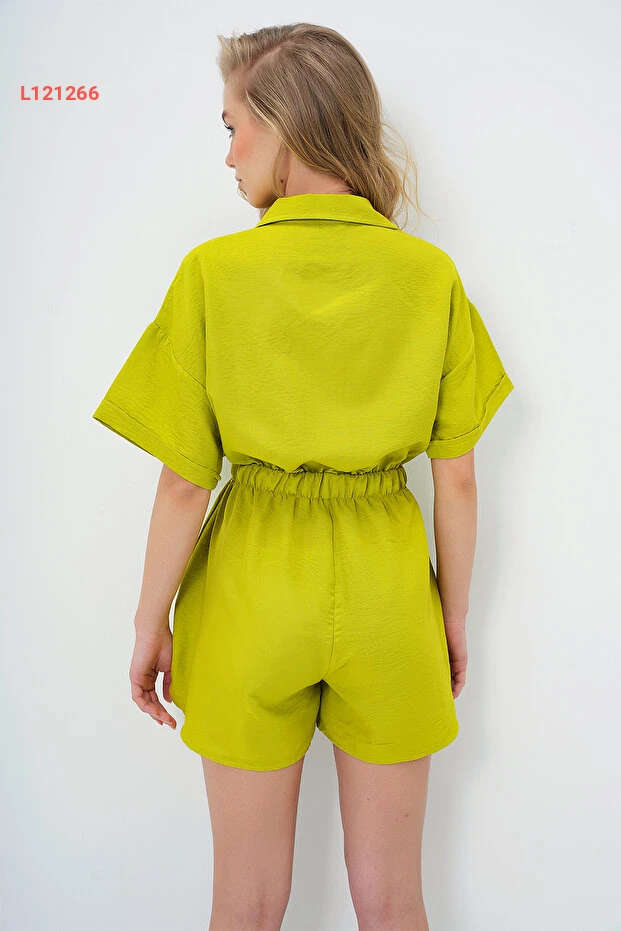 بدلة شورت عصرية بياقة قميص باللون الأخضر الزيتوني مع جيوب مزد雙ة