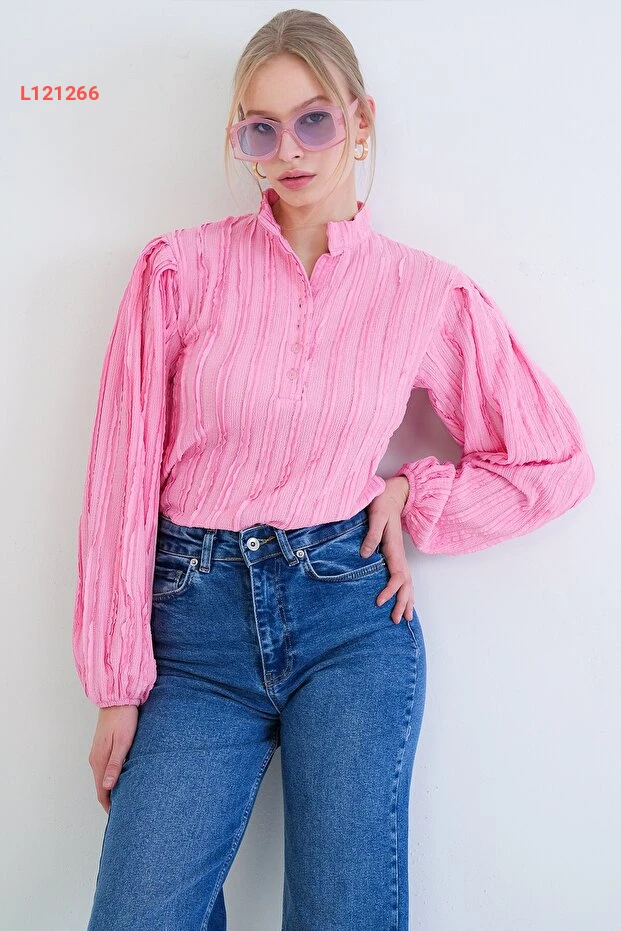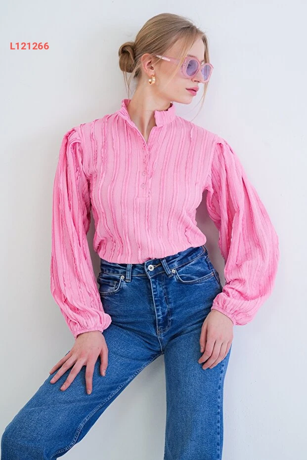 اكتشف أناقة لا مثيل لها مع بلوزة "Trend Alaçatı Stili"! تتميز بتصميمها العصري ومانعة الف القلب بحوافها المدللة وأكمام الكرة، مما يمنحك مظهرًا جذابًا وأنيقًا في كل مناسبة. مصنوع من قماش فاخرة، يجمع هذا التصميم بين الراحة والأناقة لتكوني دائمًا في صدارة الموضة.