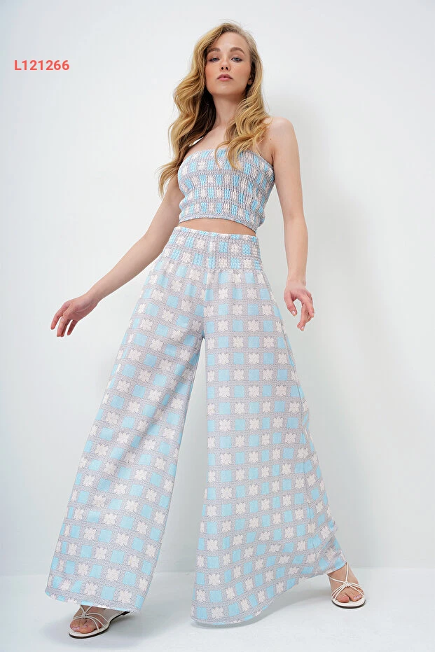 اجذبي الأنظار بإطلالة عصرية مع مجموعة Trend Alaçatı Stili، التي تتضمن بنطال واسع بخصر مُشَدّد بلون الأزرق السماوي الأنيق، والذي يوفر راحة استثنائية وأناقة لا مثيل لها. كما يترافق مع بُسطير كروبي مُصمَّم بدقة، مما يضمن لك مظهرًا جذابًا ومتفردًا في كل مناسبة. استمتعي بتجربة الأناقة والراحة في آن واحد!