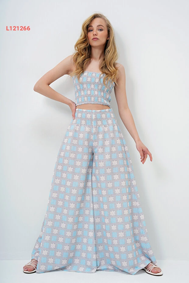 طقم بنطلون واسع بخصر مطاطي وقميص قصير بستايل Alaçatı بلون أزرق بيبي